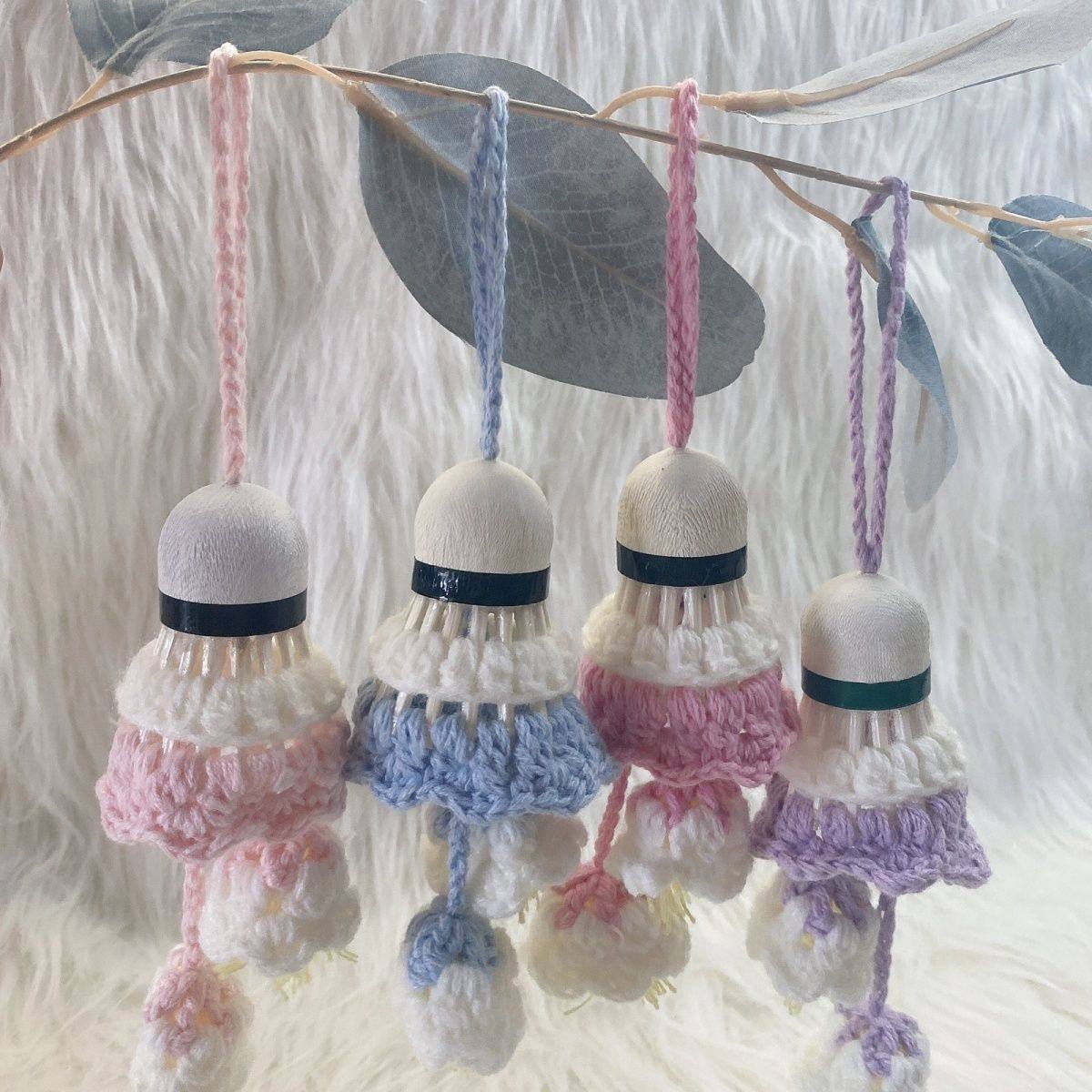 成品钩织创意手工编织铃兰花毛线钩织羽毛球挂件饰品包包钥匙扣