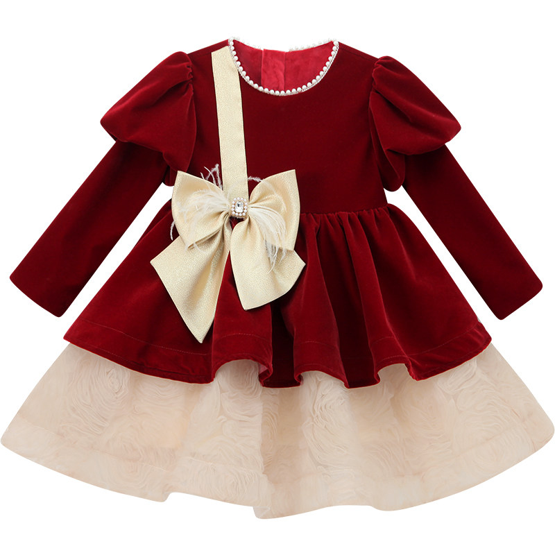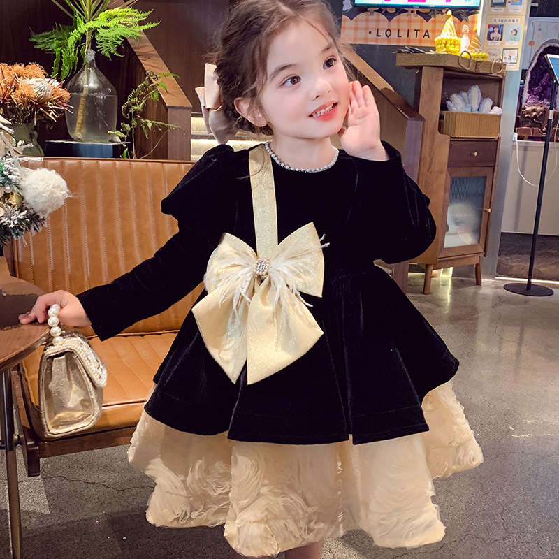 女童加绒连衣裙冬装2025新款儿童丝绒公主裙小女孩法式新年礼服裙