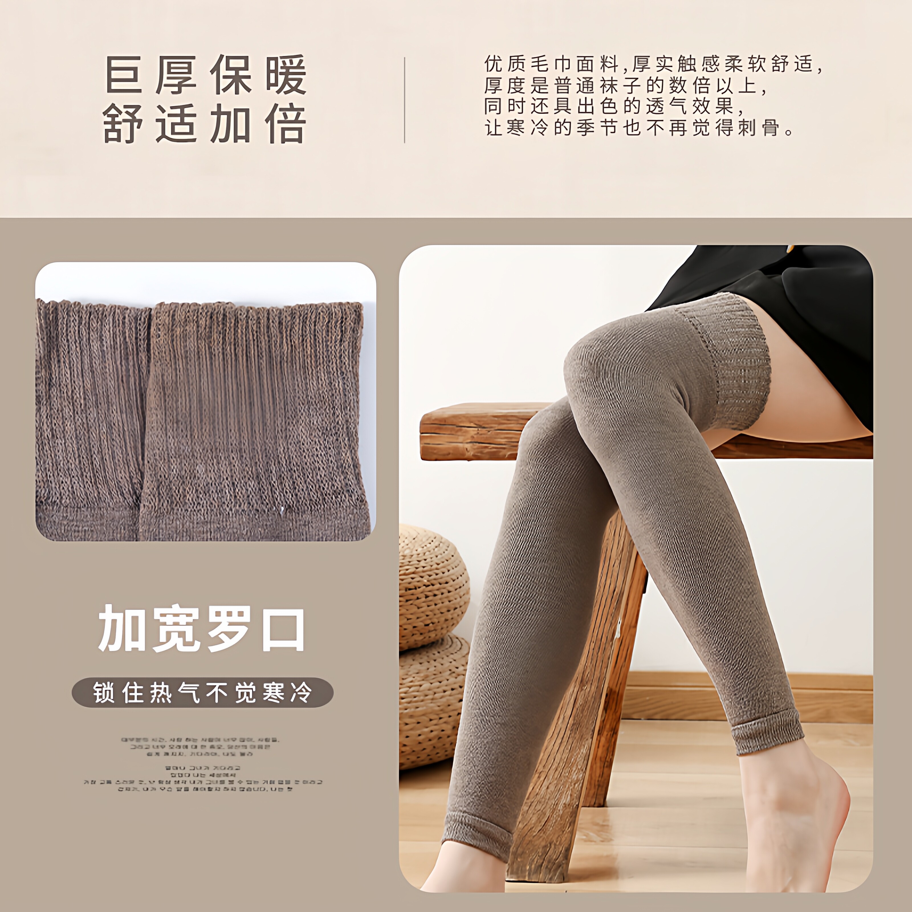 护膝袜套女过膝加厚毛圈关节长筒袜高弹力保暖护膝袜套春秋加绒