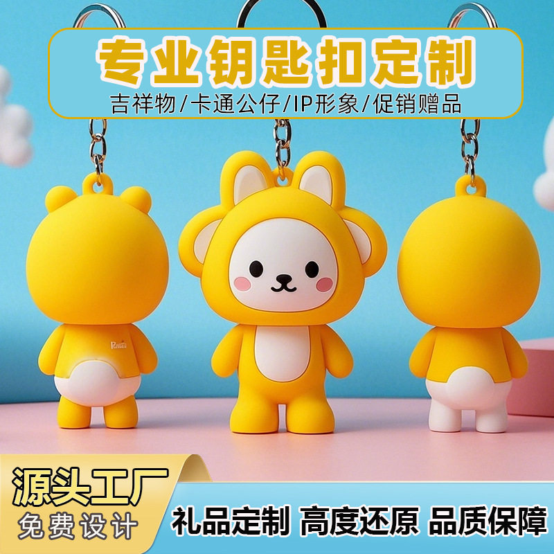 钥匙扣定制PVC软胶吉祥物3D立体公仔形象毕业专属展会礼品挂件diy