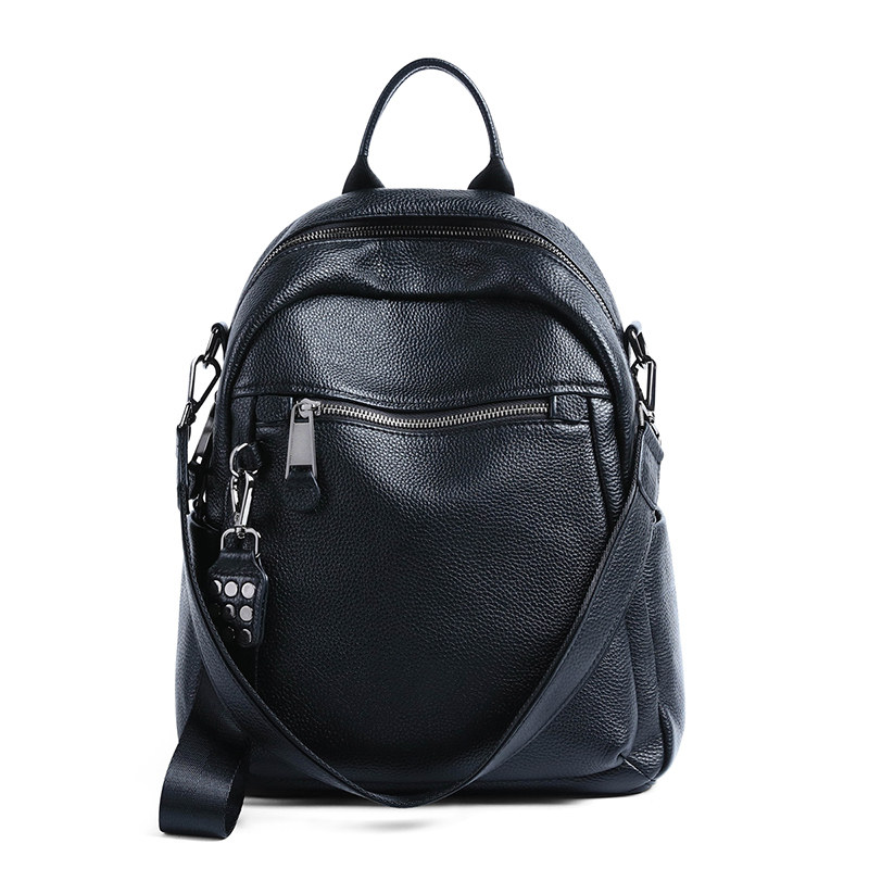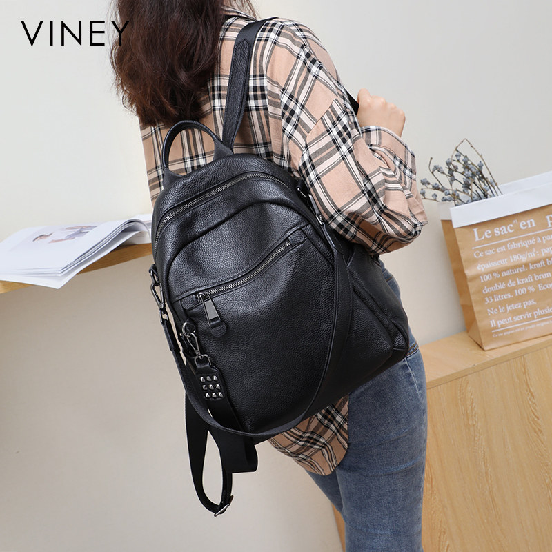 真皮大容量双肩包女款英伦风揹包大学生旅行用初中生书包黑色新款