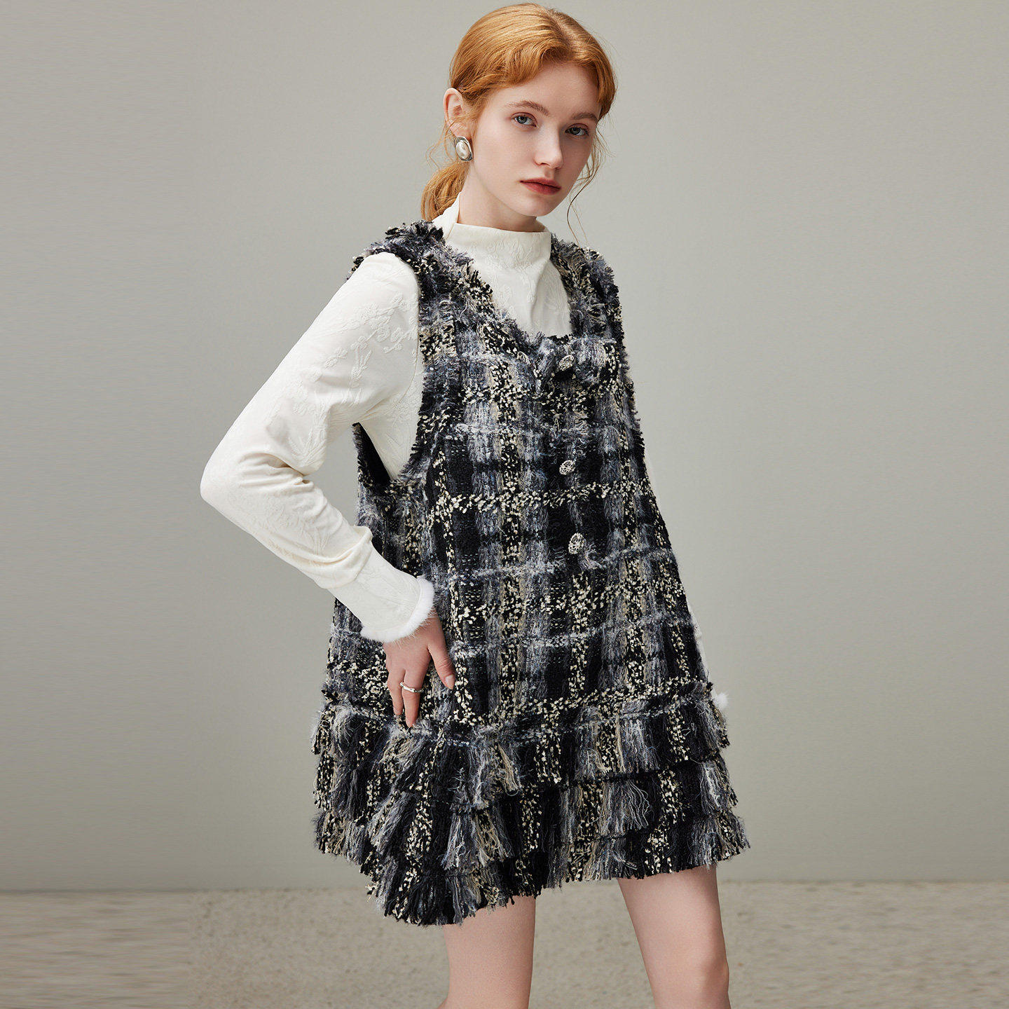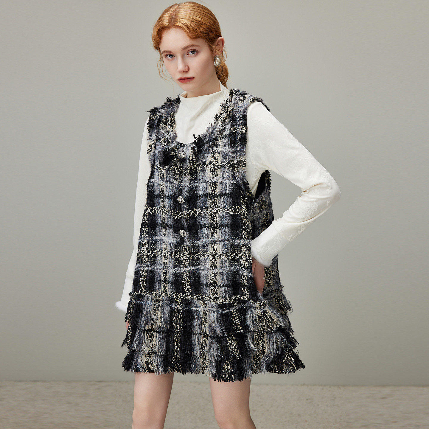 爵莱菲大码小香风名媛小个子背心裙女冬季新款流苏无袖连衣裙短裙