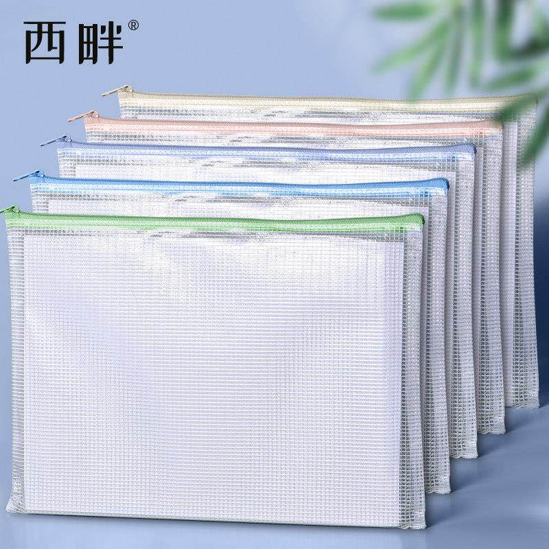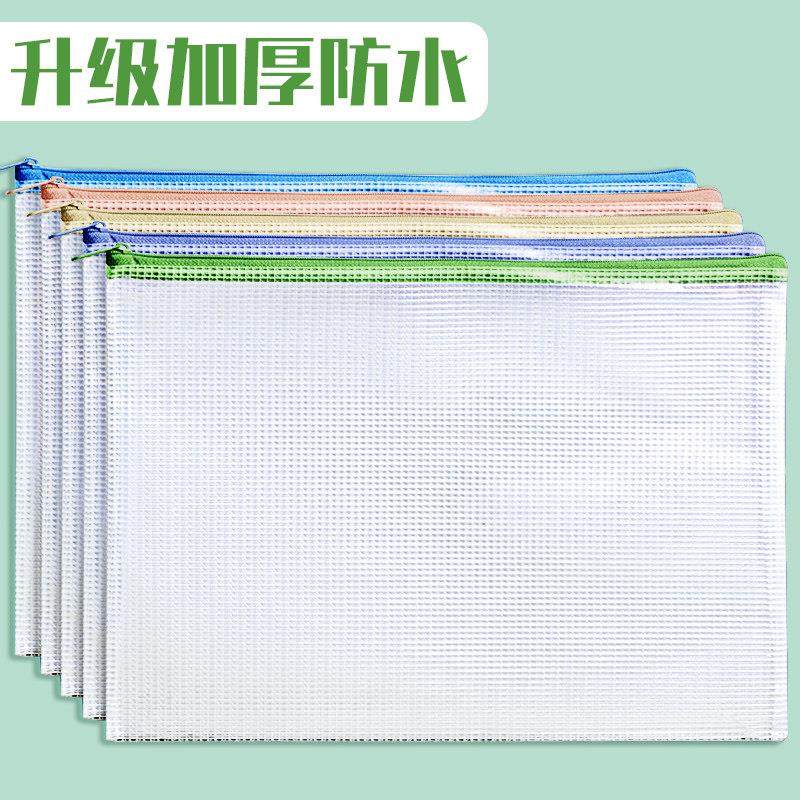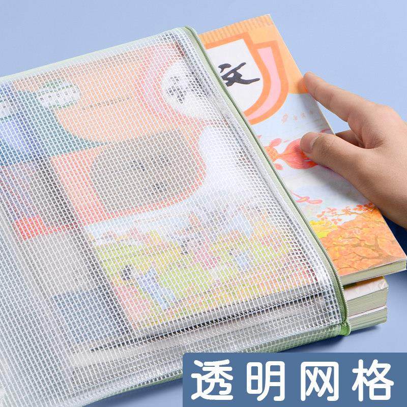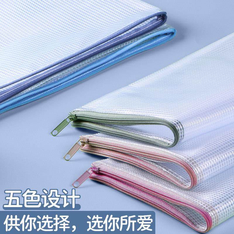 a4文件袋拉炼式小学生专用试卷袋大容量a3透明收纳袋塑料防水拉炼款资料袋A5网格拉炼袋学生考试文具整理神器