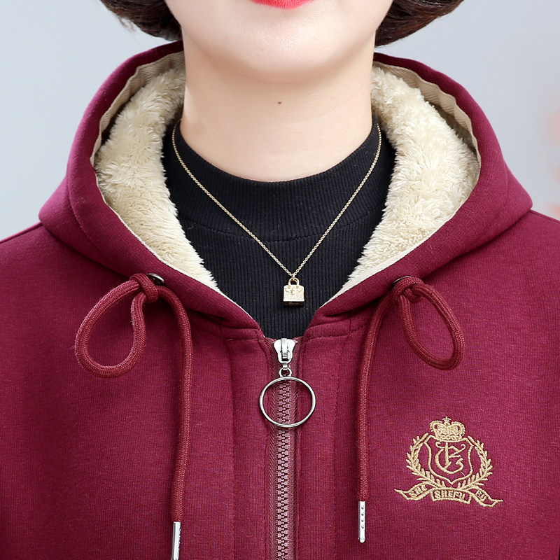 中老年女装秋冬款外套加绒加厚冬季新款妈妈卫衣冬装上衣40岁外衣