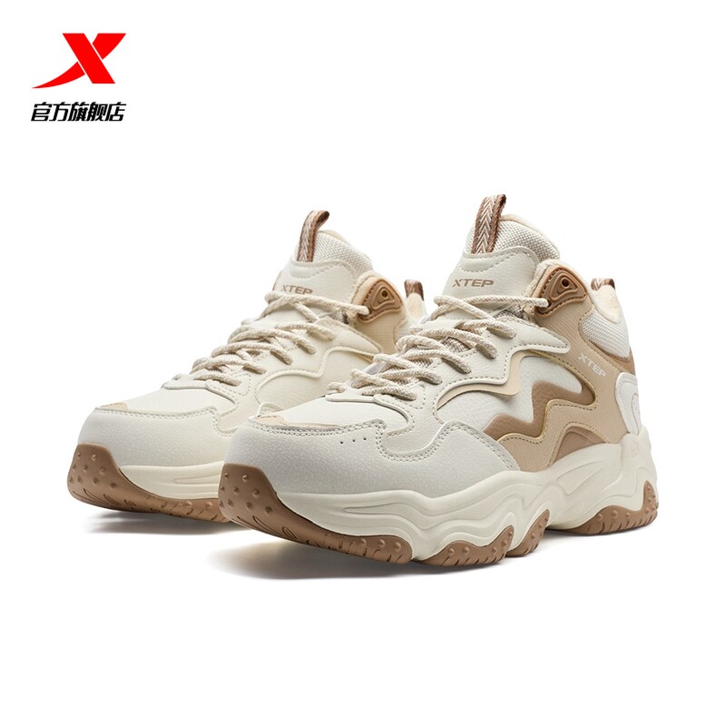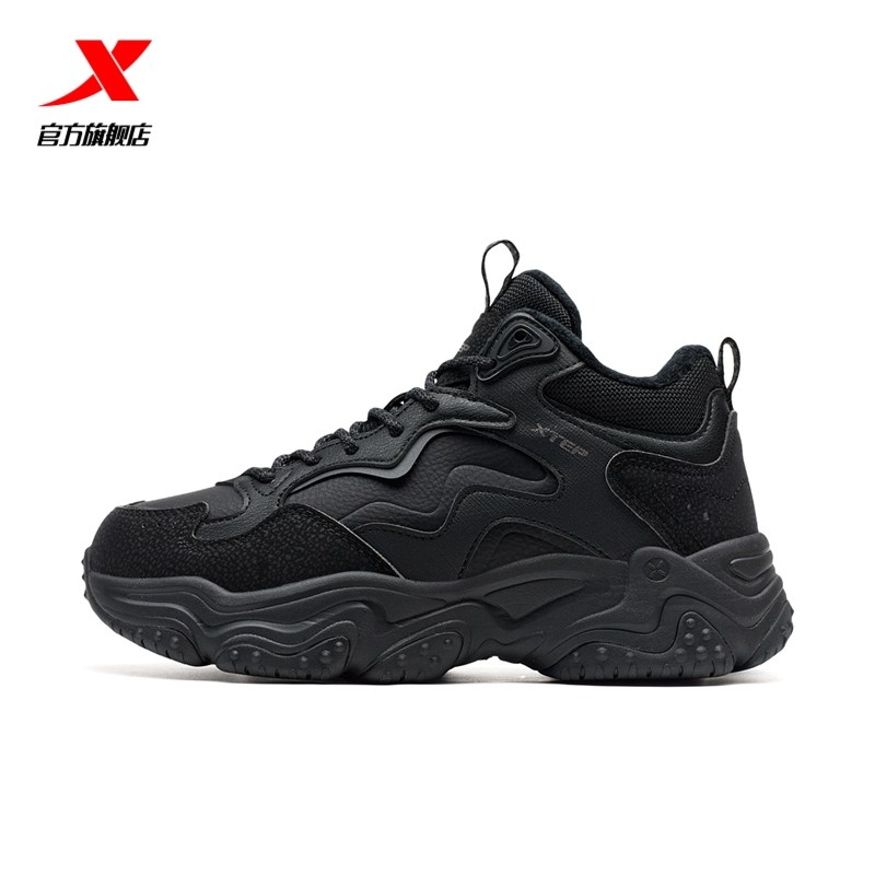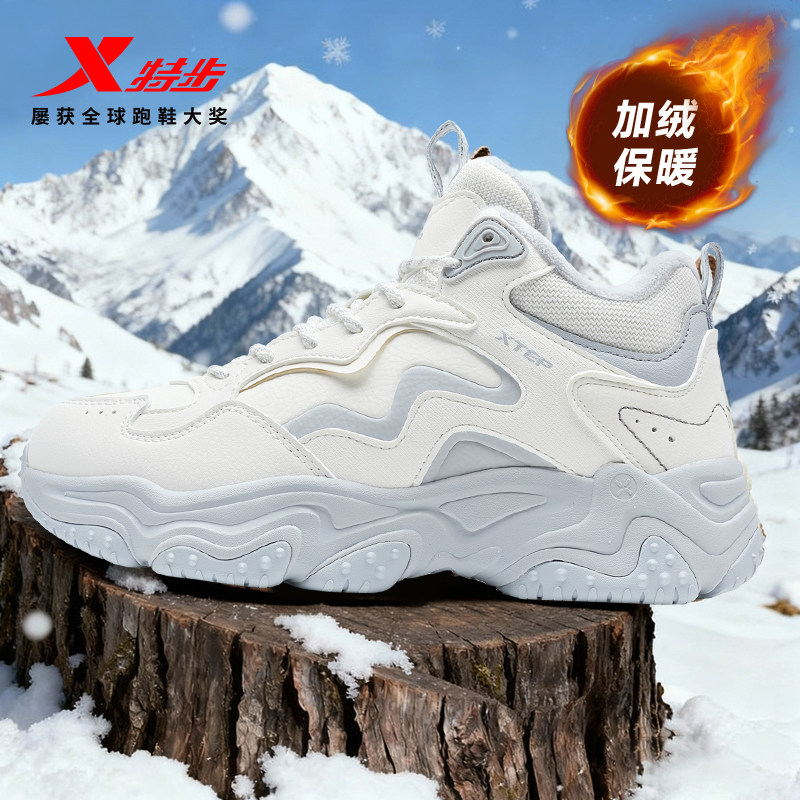 特步高帮棉鞋女鞋冬季加绒加厚保暖厚底休闲鞋户外运动鞋男老爹鞋