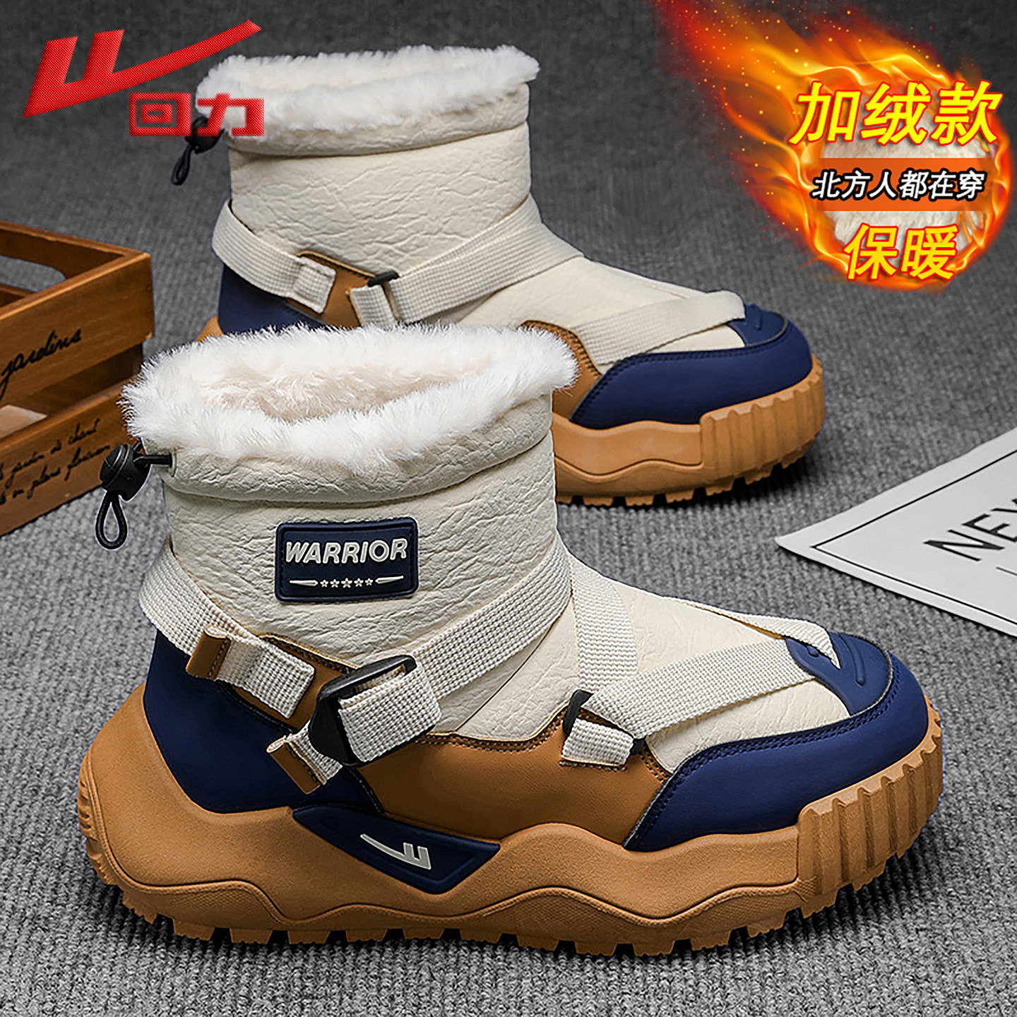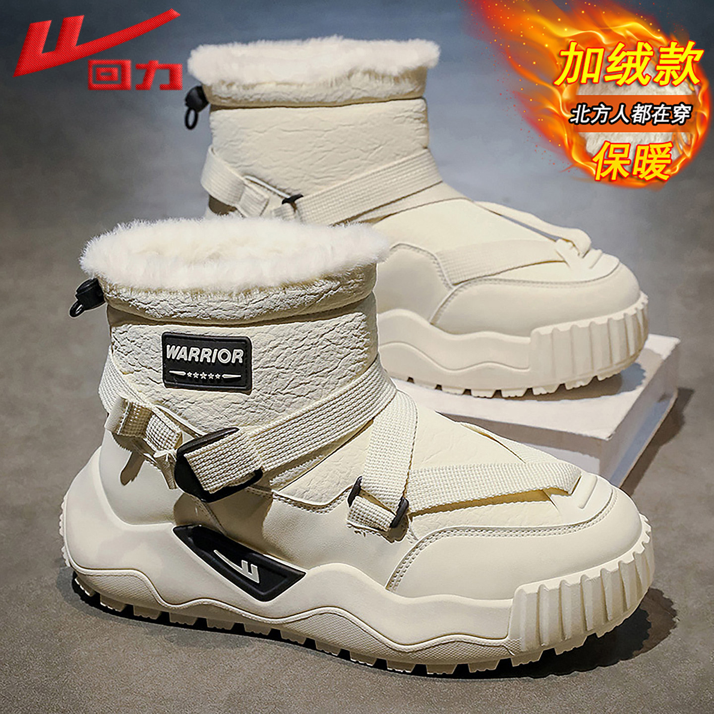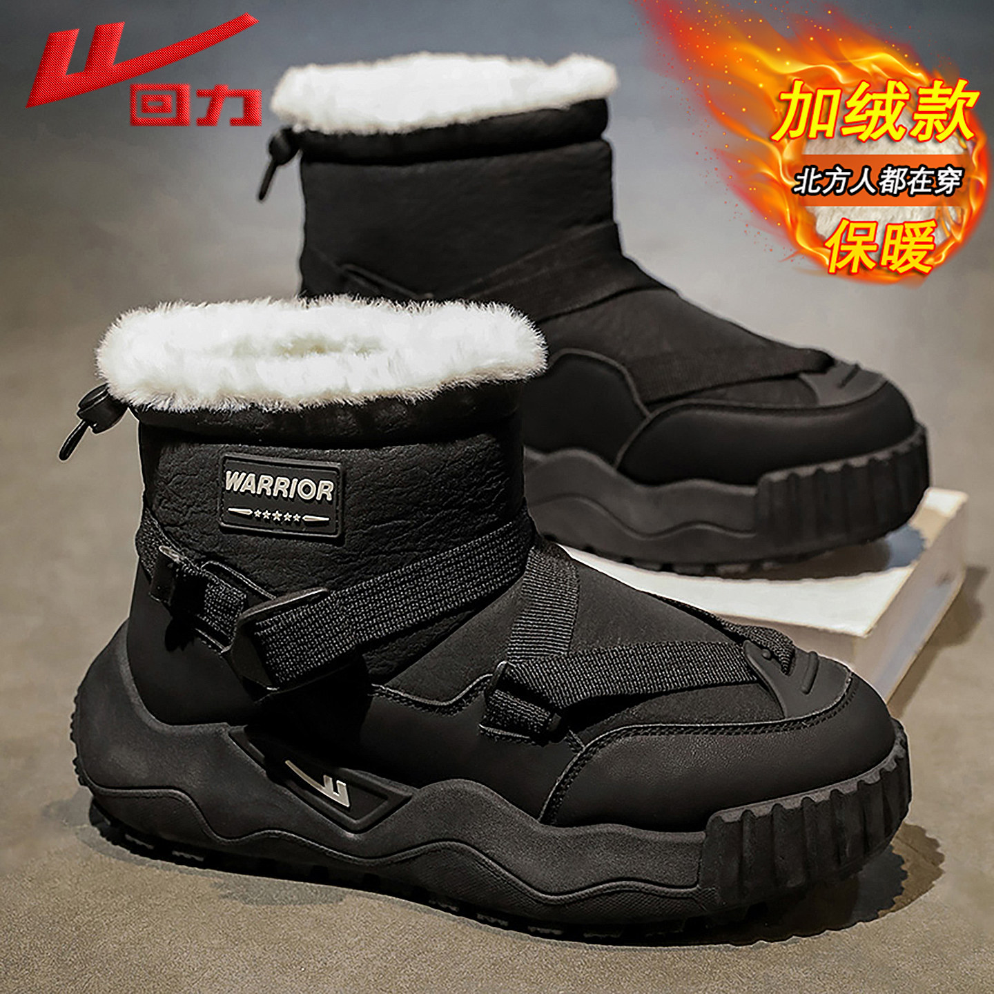 回力户外雪地靴男款2025冬季新款加绒保暖一脚蹬防水防滑皮面棉鞋