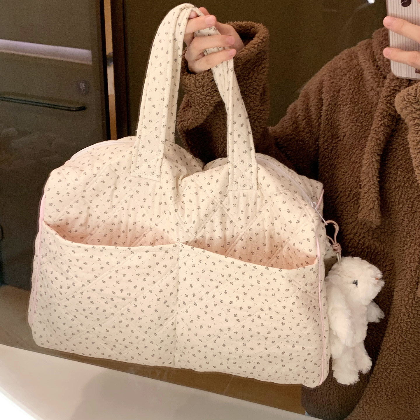 ins风小碎花行李袋手提旅行包大容量女短途出差旅游旅行袋斜挎包