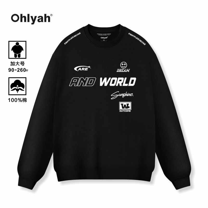 Ohlyah品牌美式潮流英文印花红色圆领卫衣男女款青少年本命年长袖