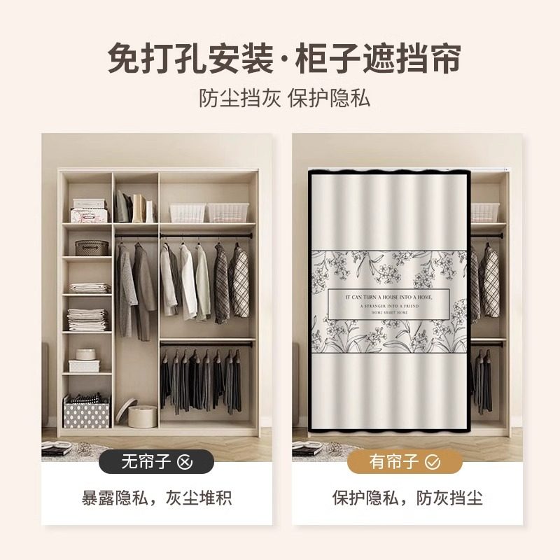 衣柜防尘帘免打孔无门柜子遮挡帘书柜置物架滑轨拉帘鞋柜遮丑布帘