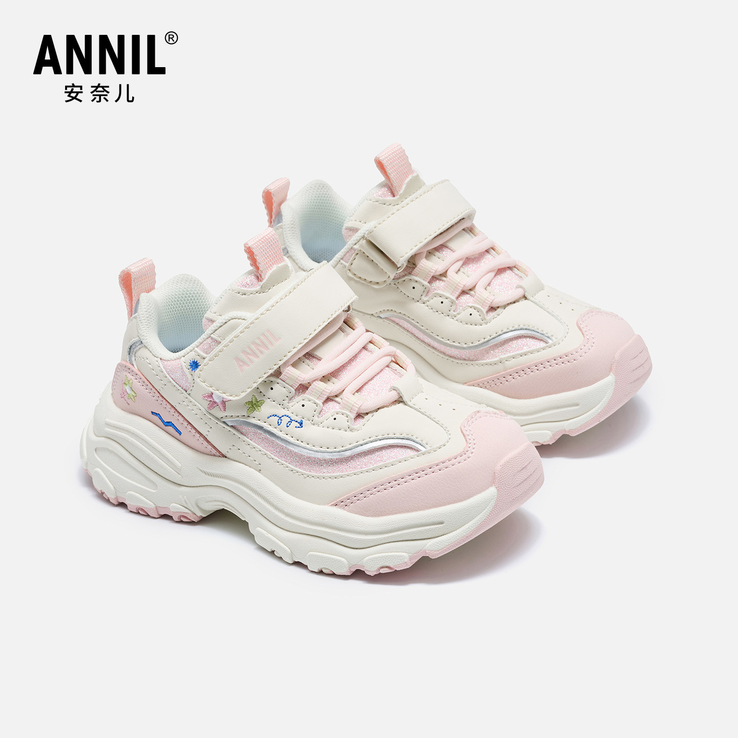 安奈儿女童鞋子老爹鞋2026新款春秋款女孩轻便软底跑步儿童运动鞋