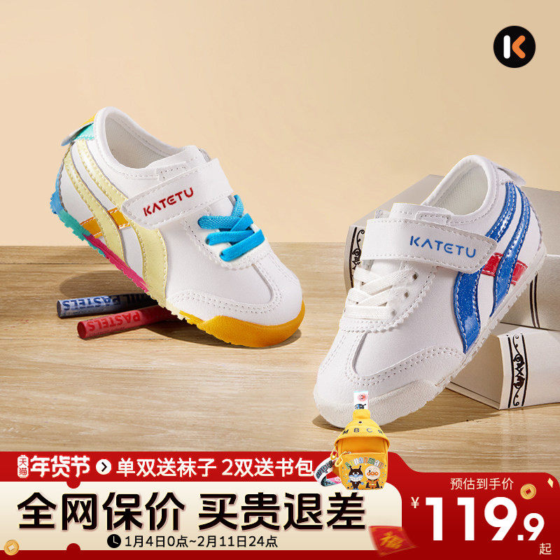 卡特兔女童软底小白鞋2026春季新款男童运动鞋彩虹休闲鞋女童板鞋