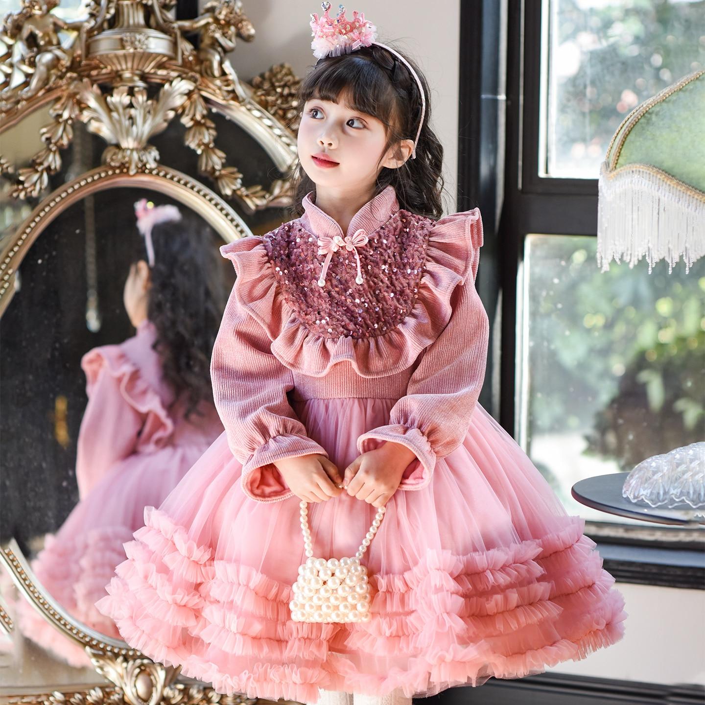 公主裙女童2026新款冬季儿童连衣裙冬装小女孩洋气加绒冬裙子童装