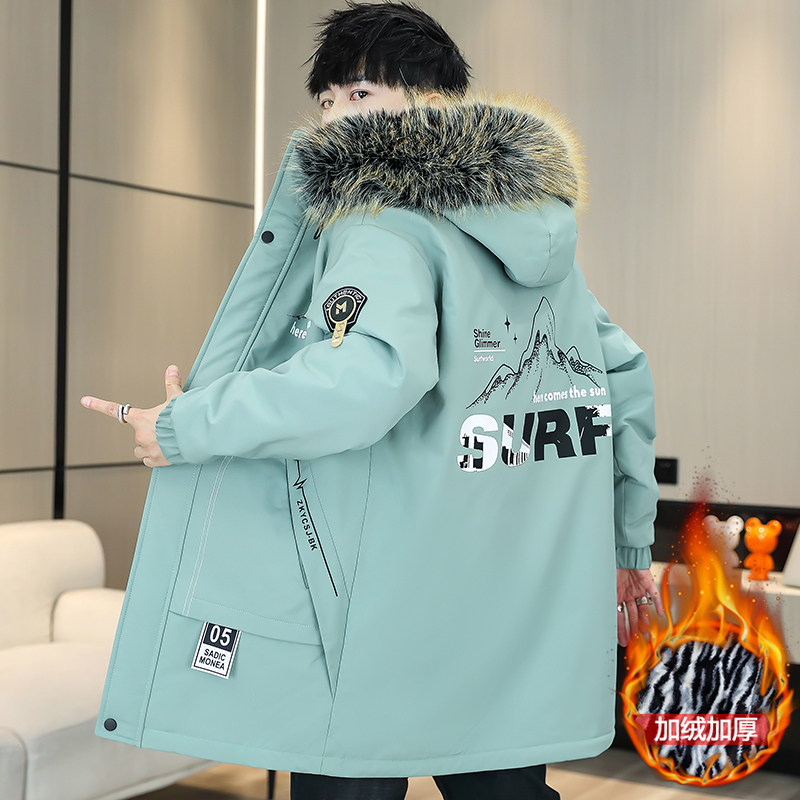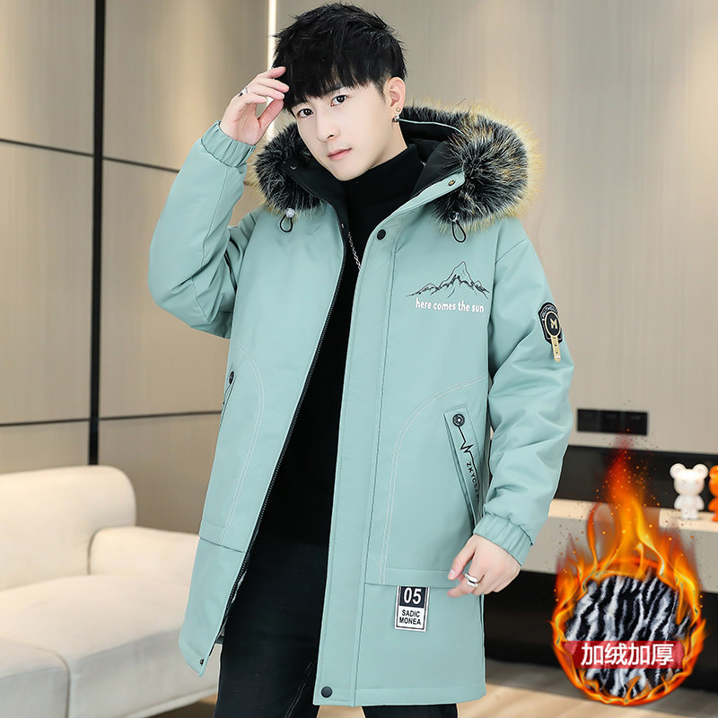 羽绒服男中长款秋冬季加厚外套学生修身棉服男款冬装棉衣派克服男