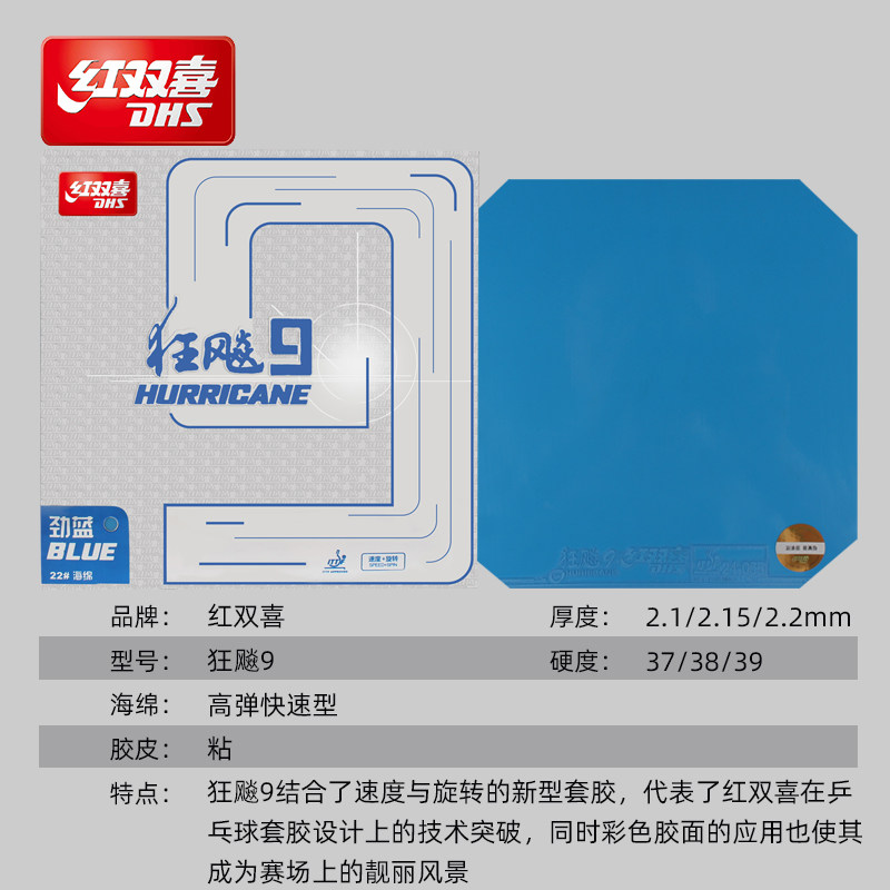 红双喜乒乓球拍拍胶皮狂飙9乒乓球胶皮狂飚9蓝海绵彩色反胶套胶