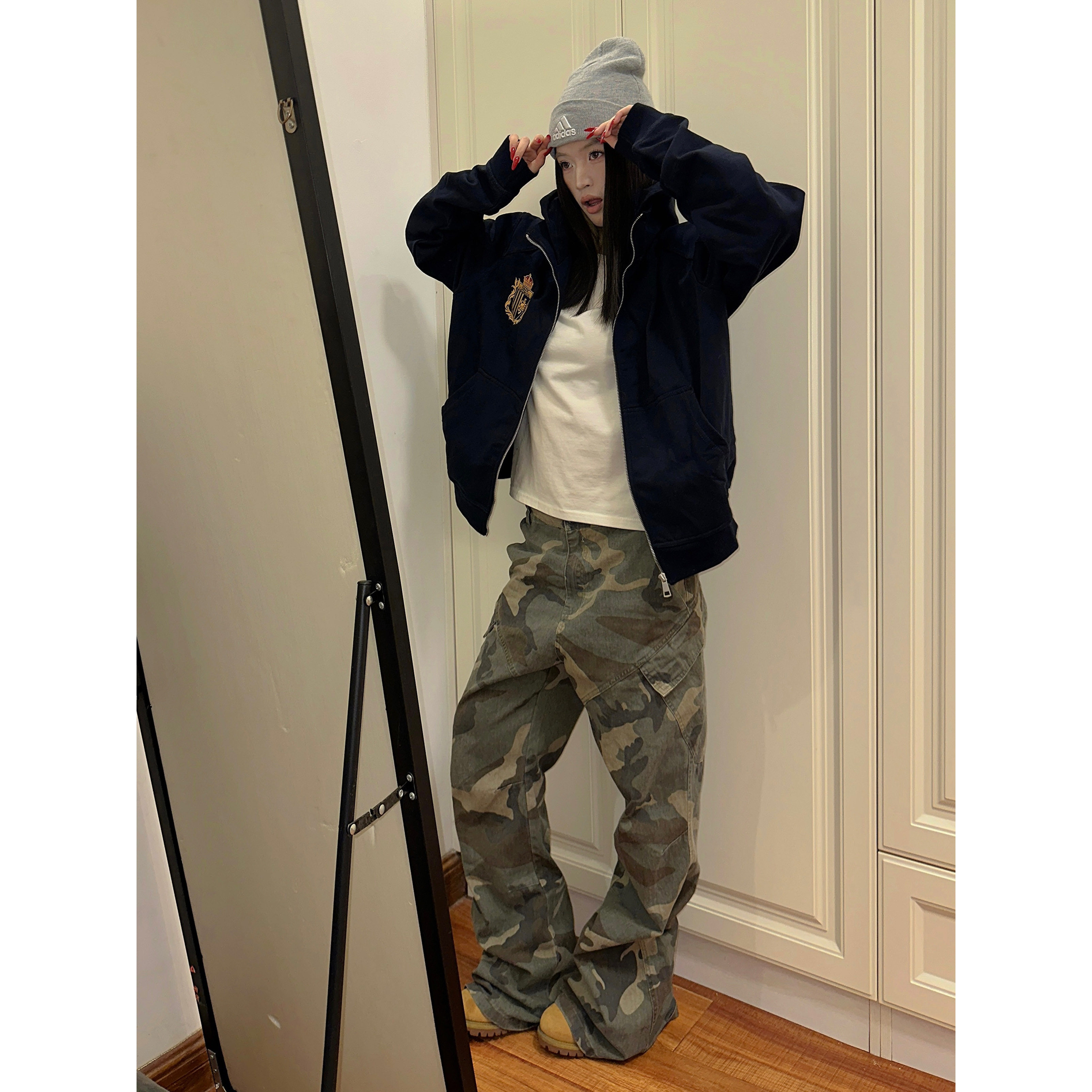 F383 2024美式复古刺绣连帽拉链卫衣开衫男女款宽松百搭休闲外套