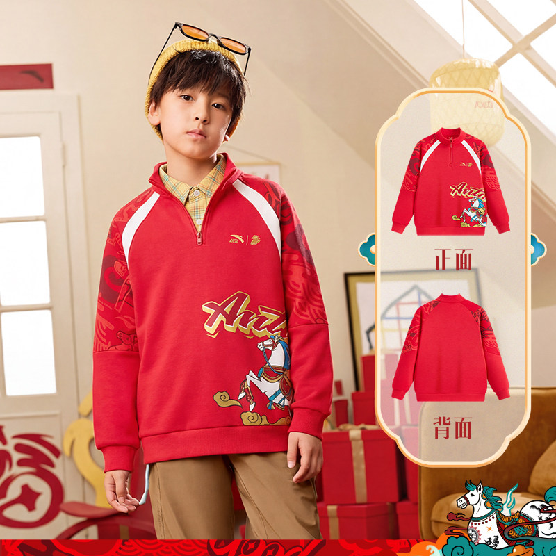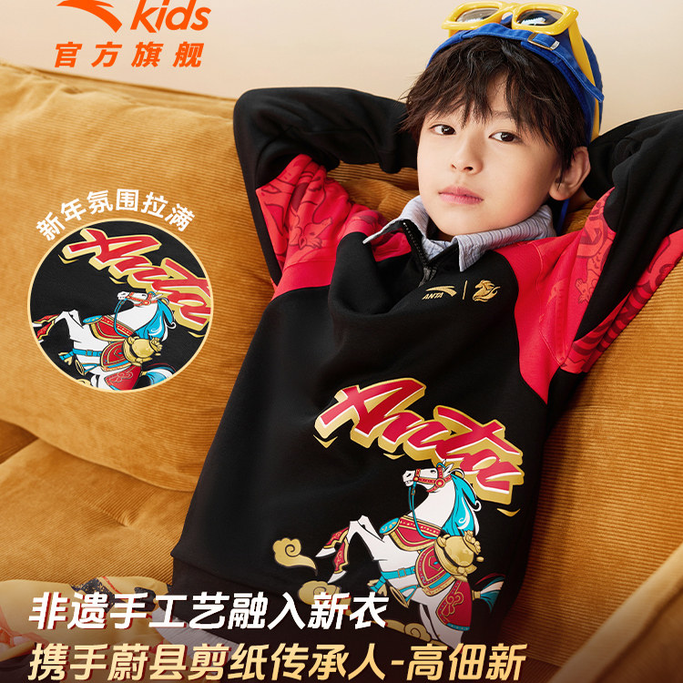 【马年限定】安踏儿童男童卫衣新年厚款2026新款立领拉链保暖加绒