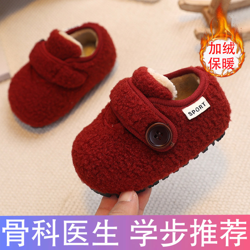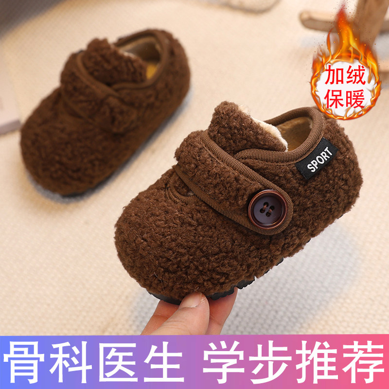 冬季学步鞋男女宝宝棉鞋加绒保暖羊羔毛毛鞋0一1岁-3婴儿鞋子家居