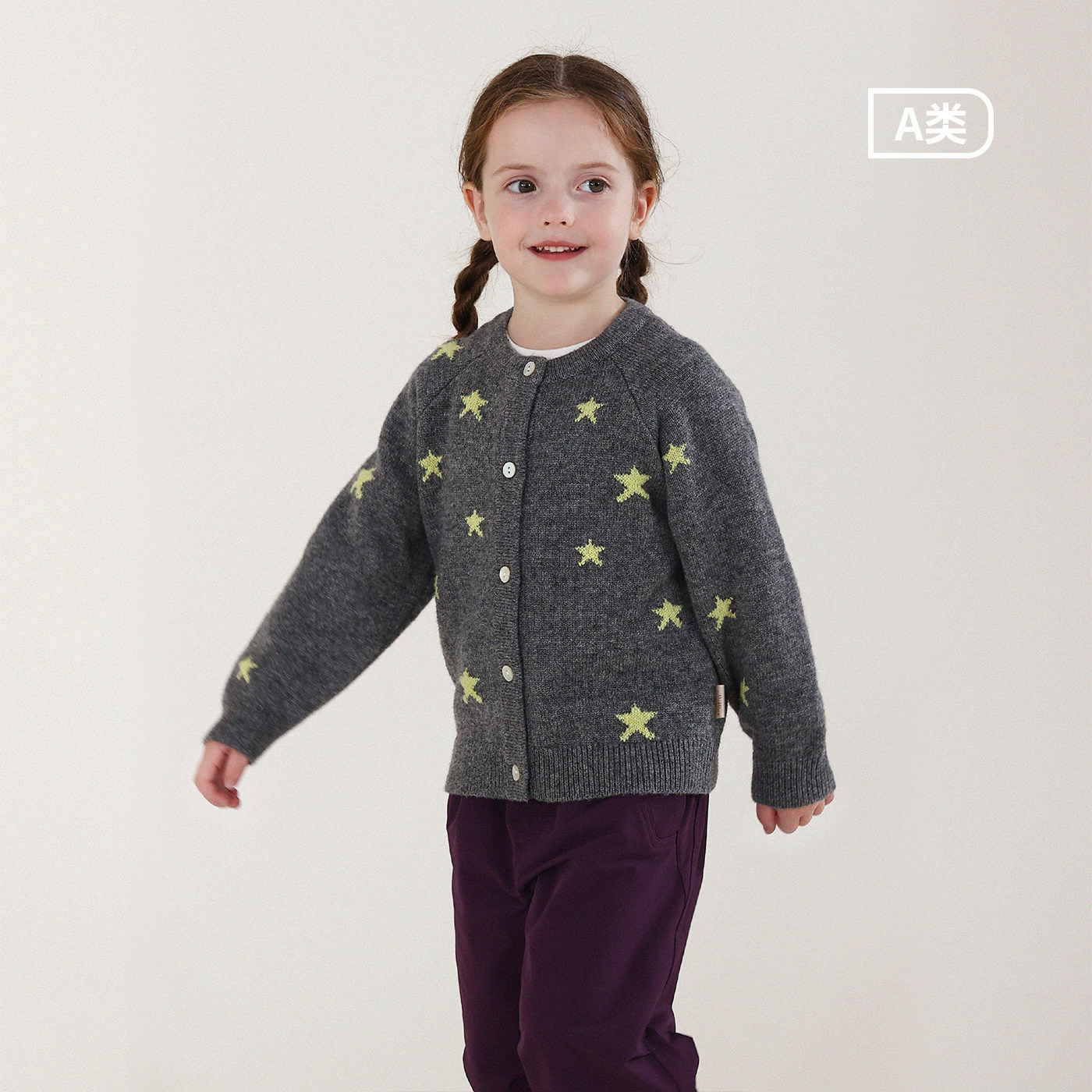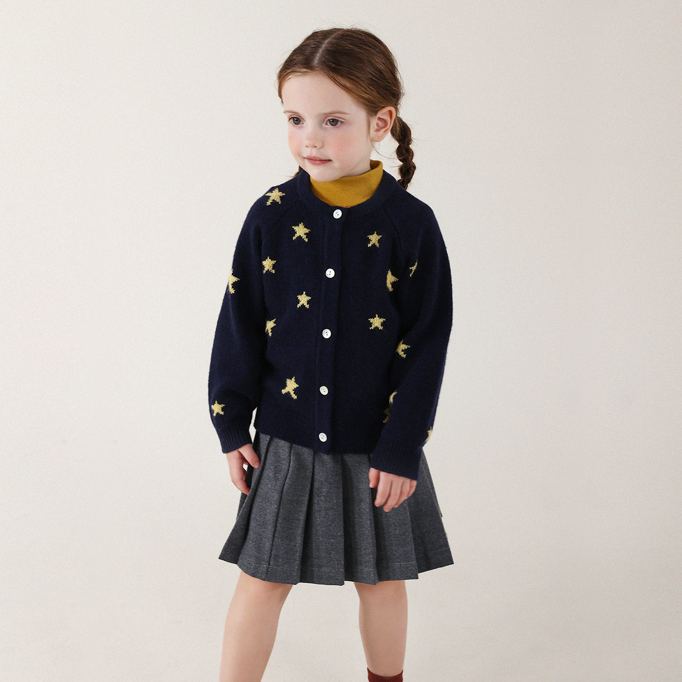 宝宝秋冬小众针织星星毛衣开衫允儿妈女童冬季新款外套儿童上衣潮