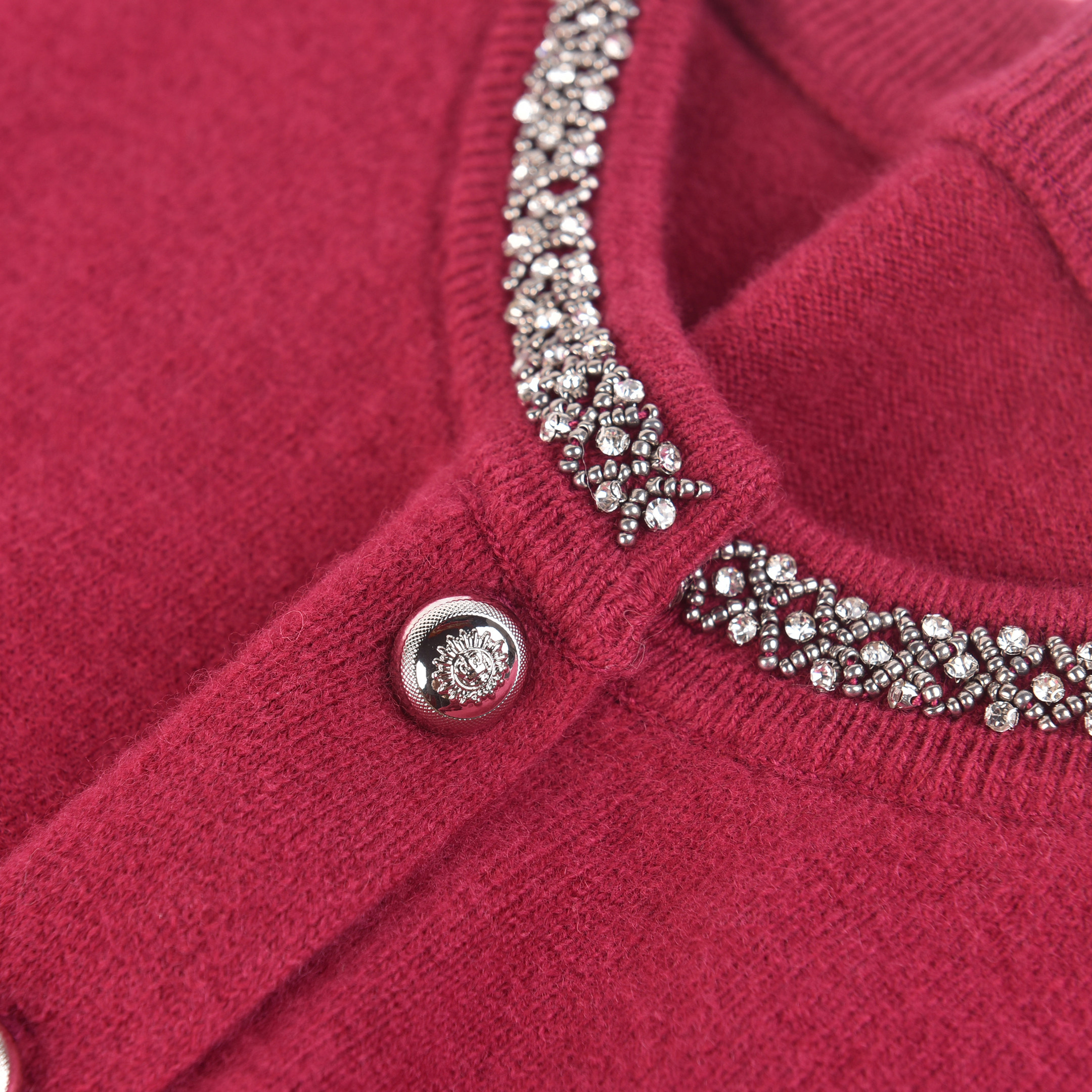 年轻时尚妈妈100%纯羊毛针织开衫女秋冬新款圆领针织毛衣外套上衣
