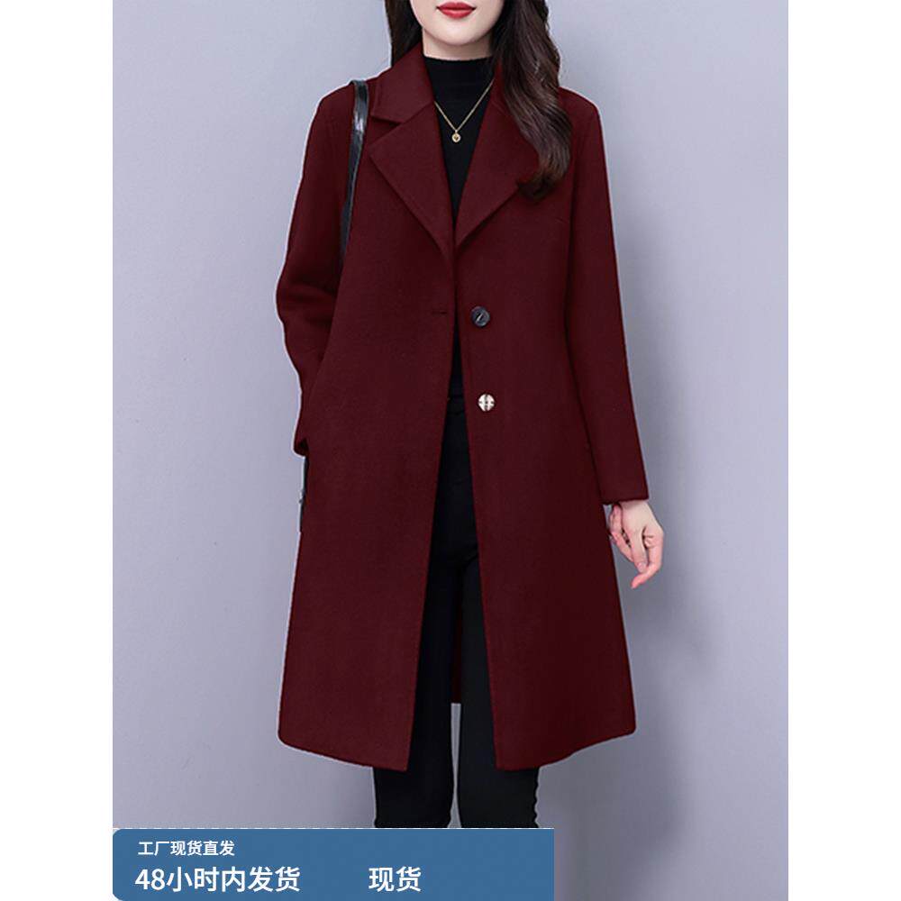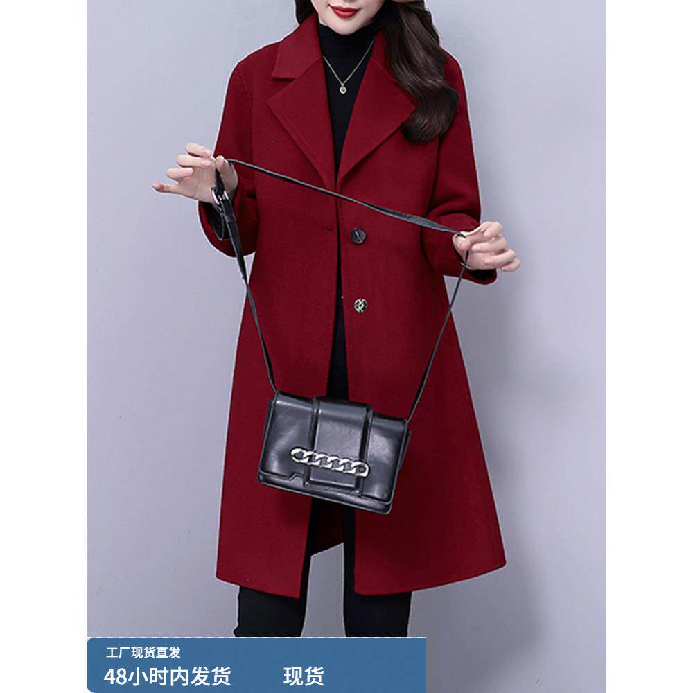 冬装夹棉加厚毛呢外套女士2025新款今年流行爆款妈妈红色呢子大衣