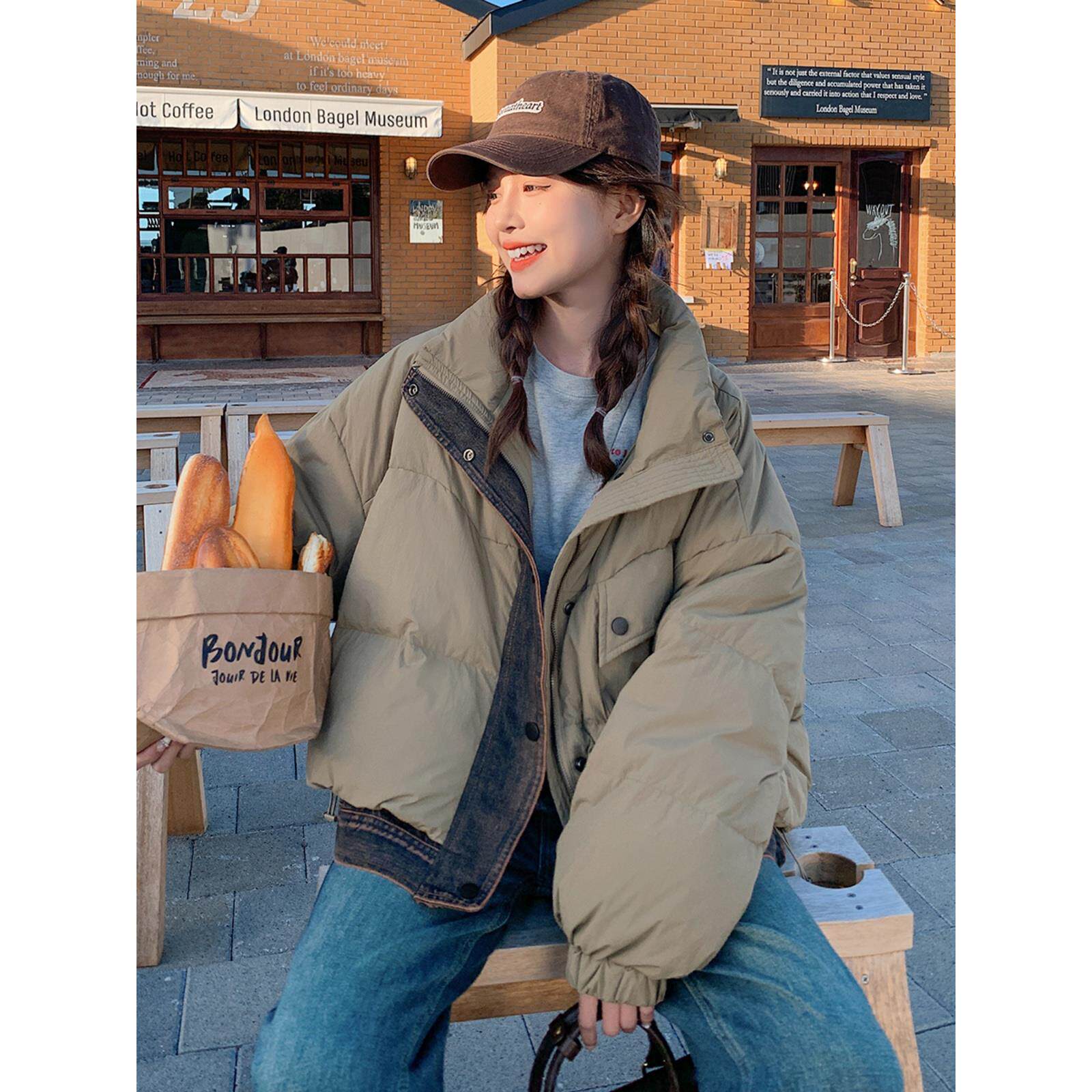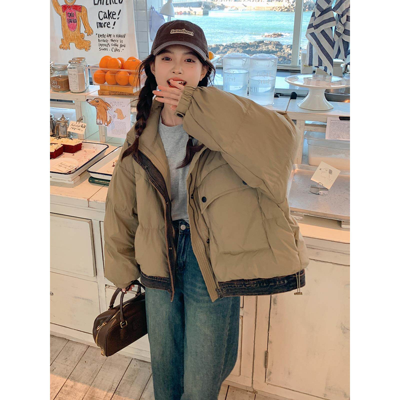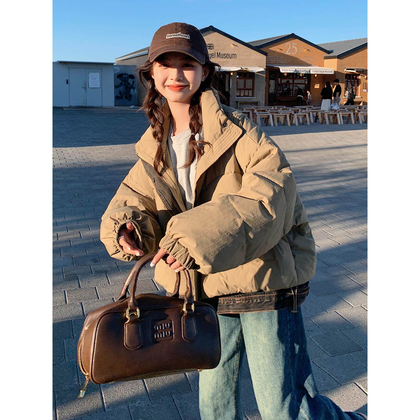 卡其色短款羽绒服女冬季2024新款韩系减龄休闲加厚50白鸭绒面包服