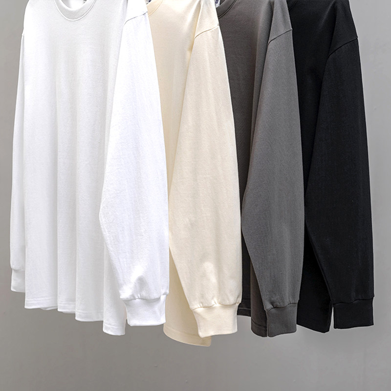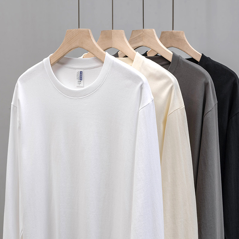 美式复古重磅纯棉长袖t恤男女款春秋季简约纯色内搭打底衫卫衣男