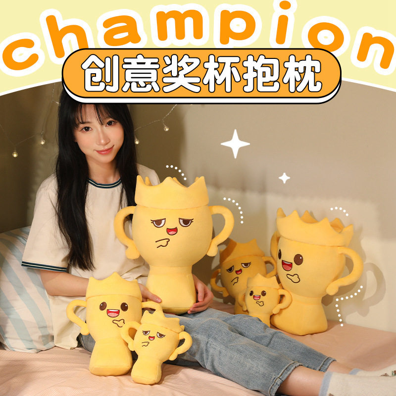 创意奖杯玩偶毛绒玩具搞怪冠军杯奖状抱枕俱乐部公司年会活动定制