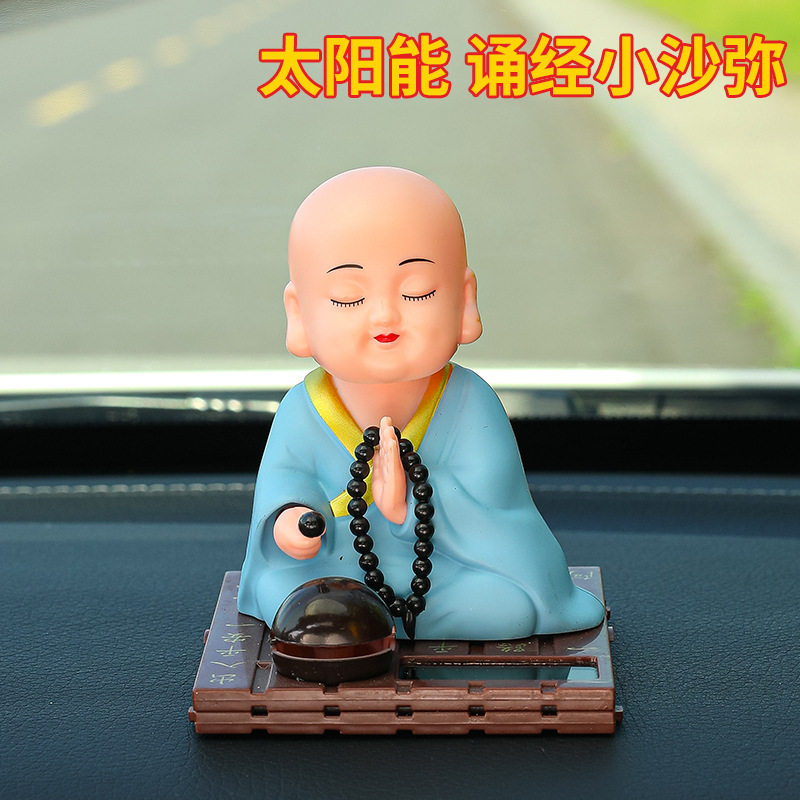 太阳能敲木鱼点头小和尚汽车创意摆件摇扇弥勒佛太阳能招财猫车载
