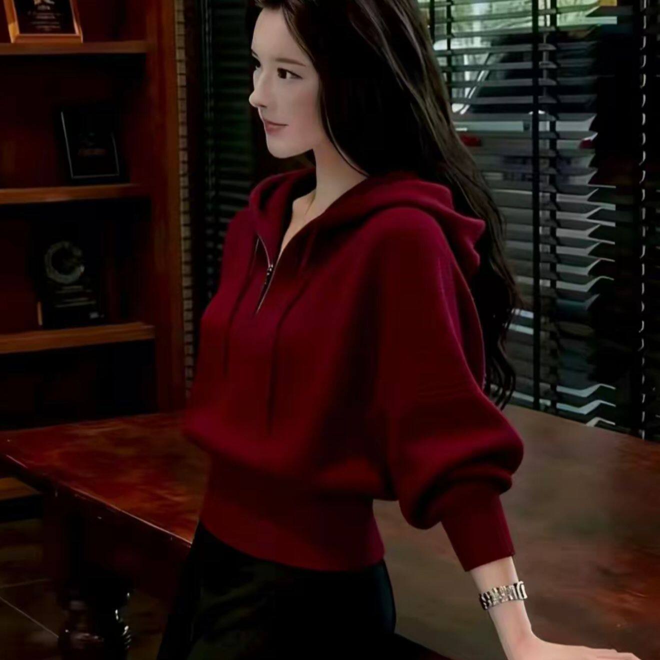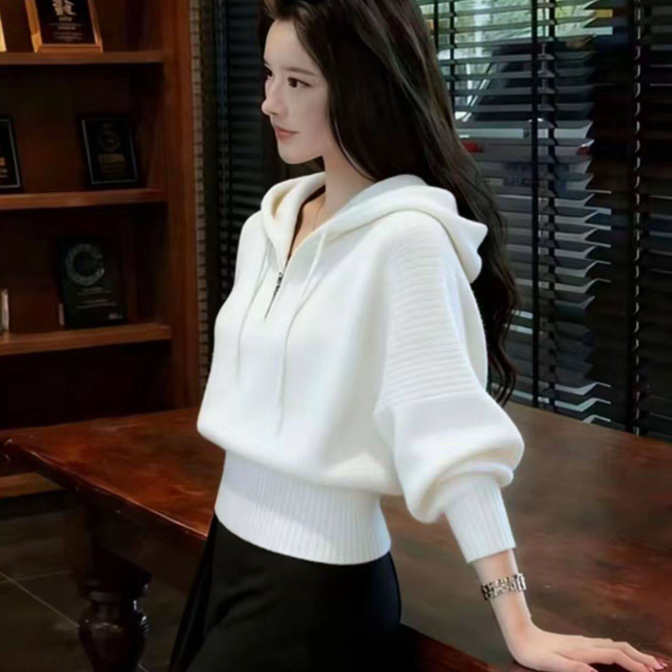 东莞大朗毛衣不起球新款正品连帽打底针织衫秋冬短款小个子外套女