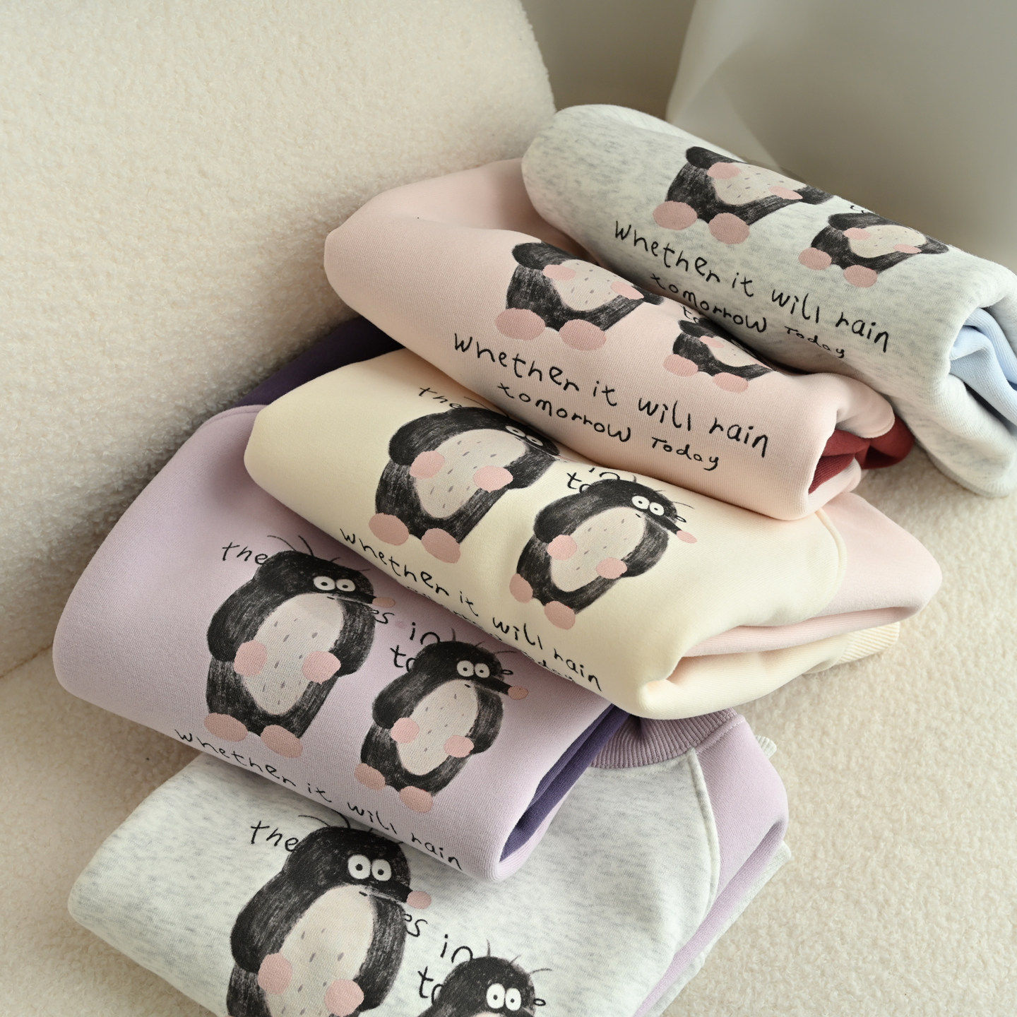 青少年加绒卫衣 儿童一体绒女童圆领宽松保暖休闲上衣 170码 冬款