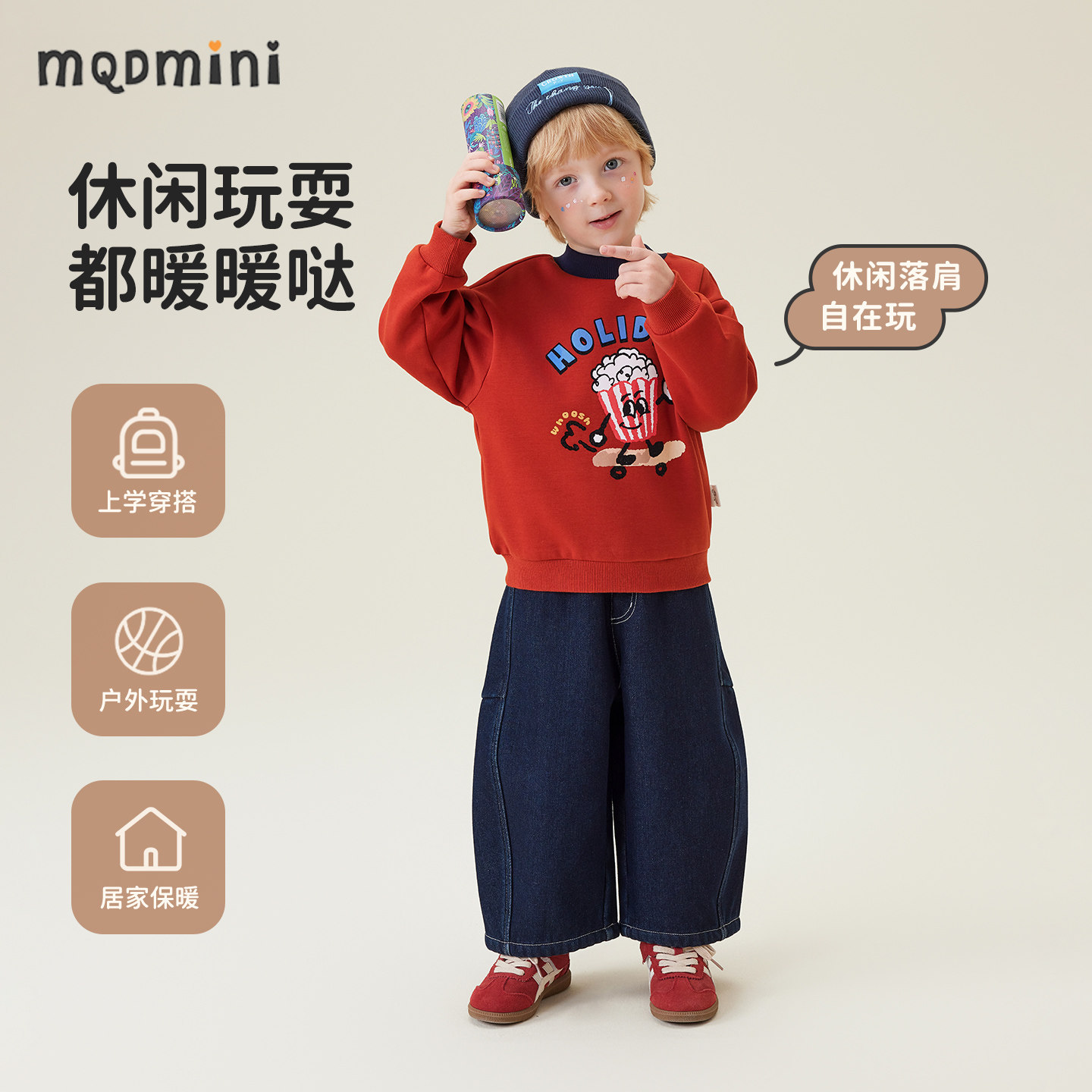 MQDmini女童卫衣2025新款冬季男童加绒加厚上衣儿童半高领内搭