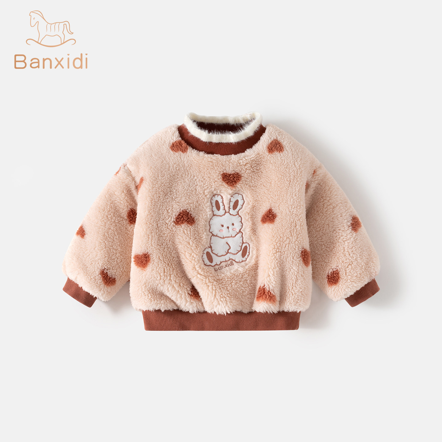 班喜迪女童卫衣冬装2025新款洋气宝宝加绒加厚套头半高领上衣冬季