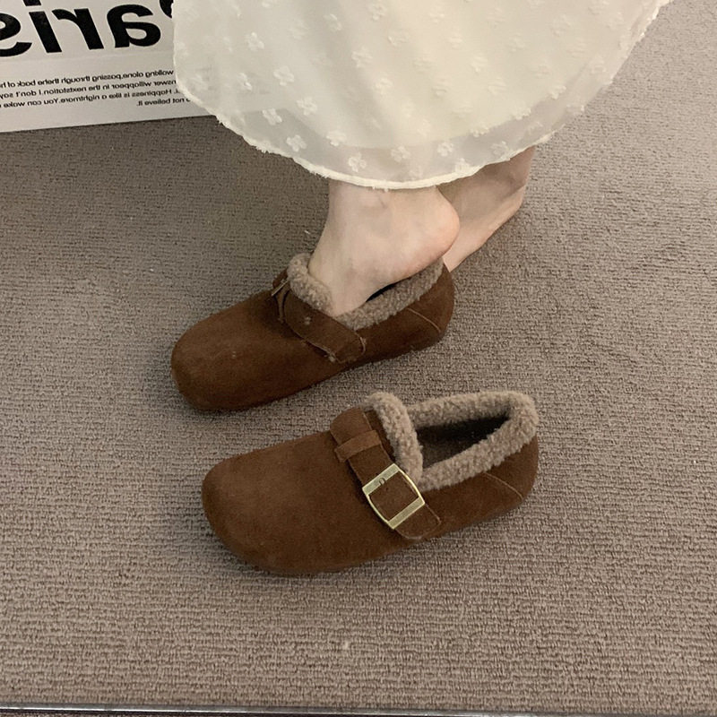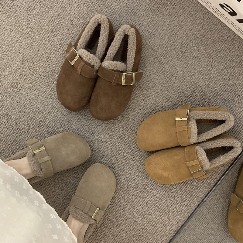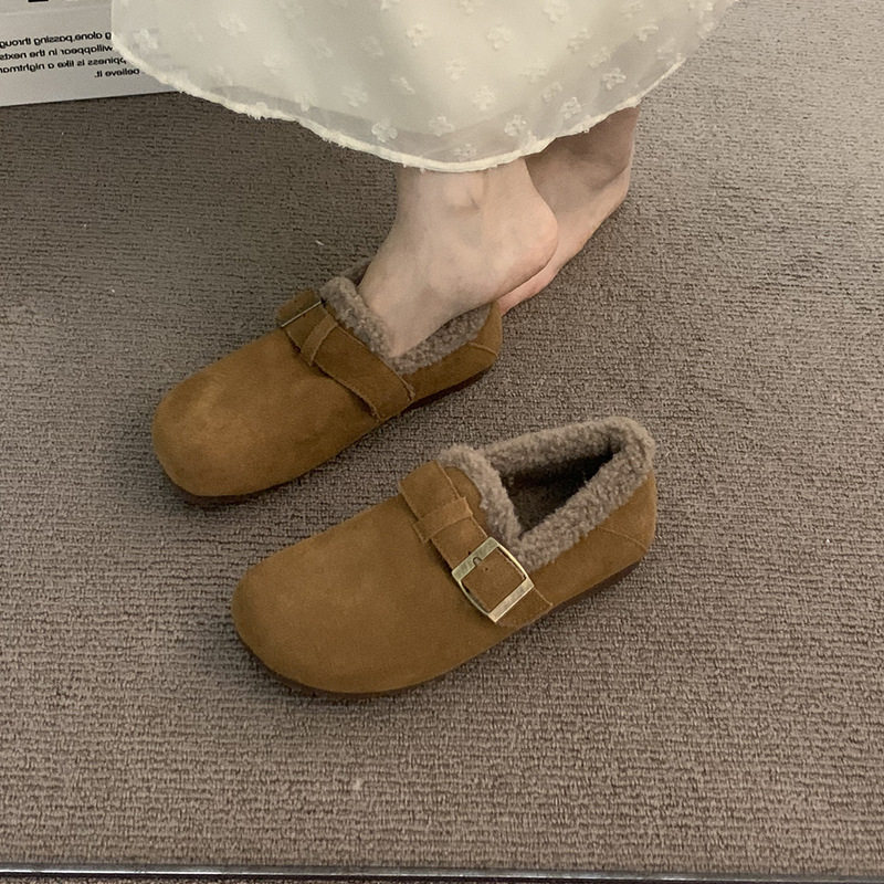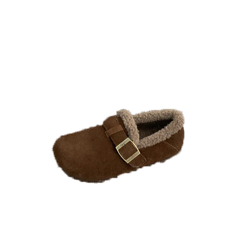 内增高厚底软皮加绒勃肯鞋外穿秋冬一脚蹬丑萌晚晚风保暖豆豆棉鞋