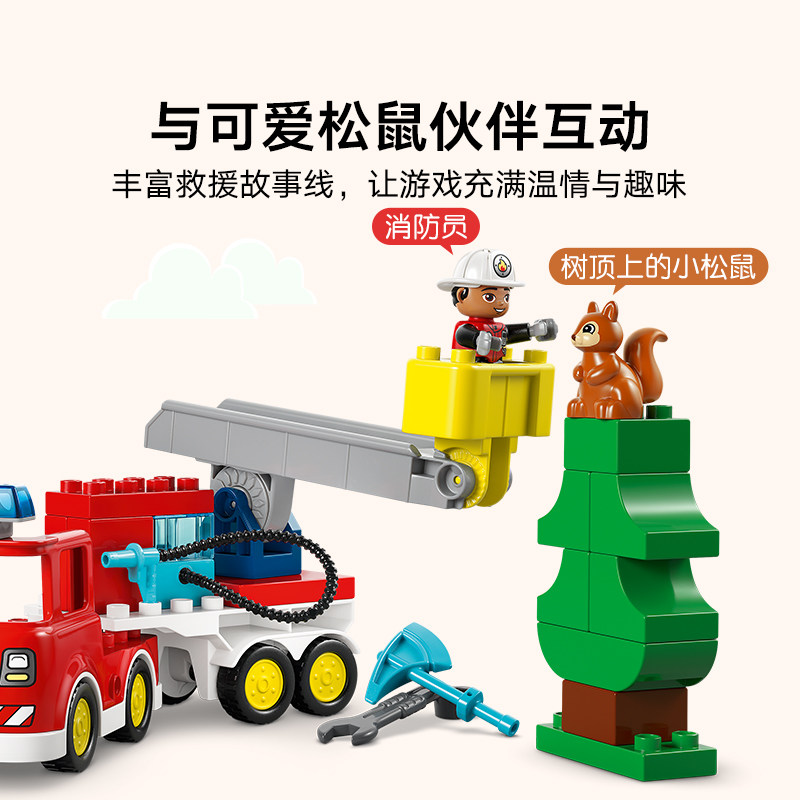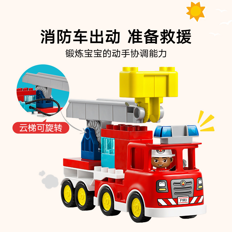 乐高官方旗舰店正品10473得宝消防车大颗粒积木宝宝益智玩具礼物