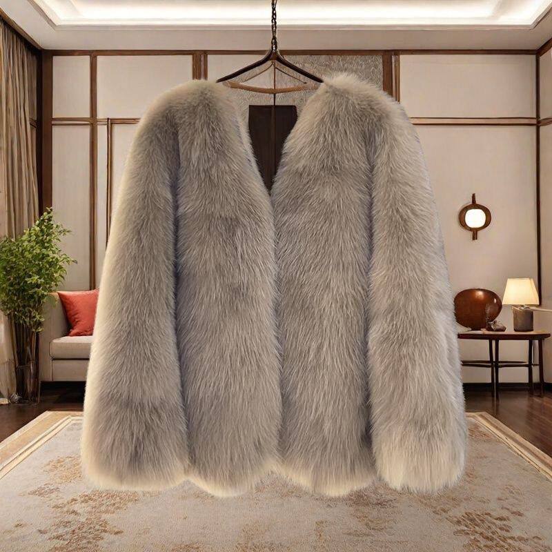 环保皮草大衣秋冬季新款仿狐狸毛上衣加厚年轻款小香风毛毛外套女