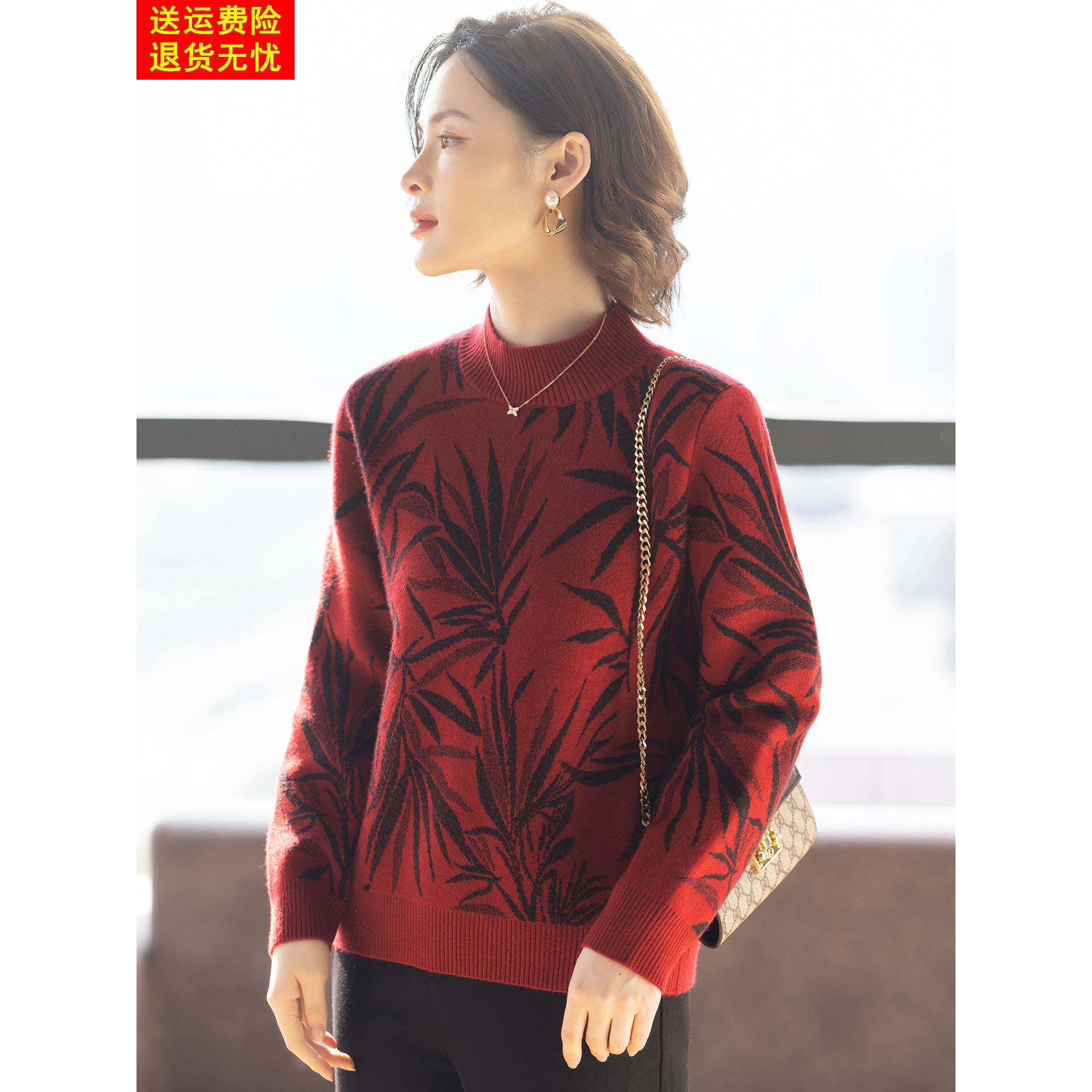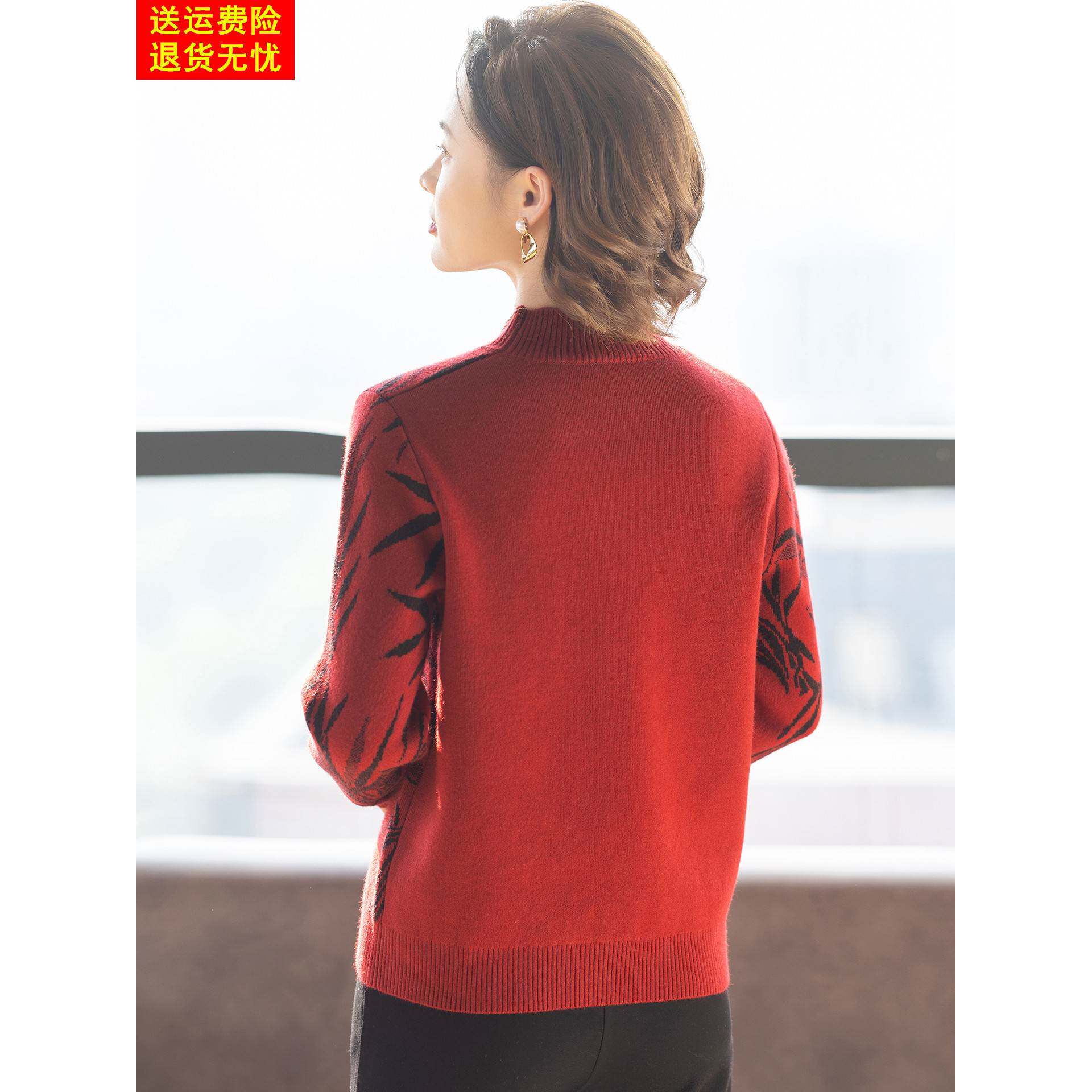 妈妈冬装毛衣2025新款打底秋冬红色上衣服洋气加厚中老年人女套装
