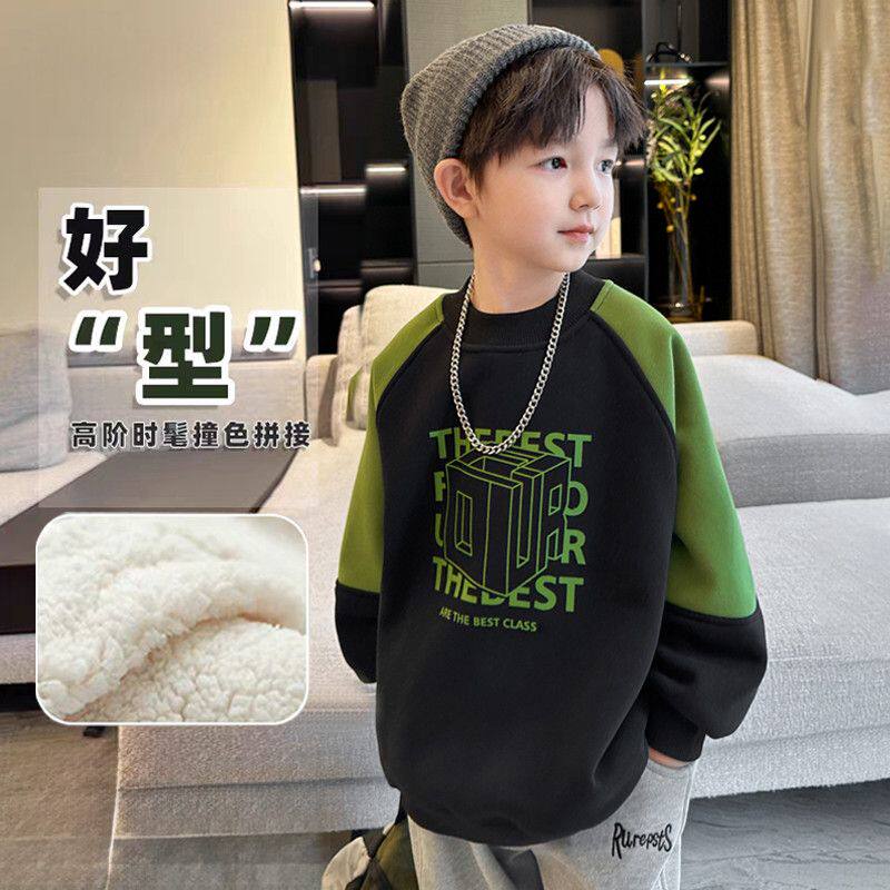 儿童加绒卫衣2026秋冬新款男童加厚保暖上衣中大童男孩冬装打底衫