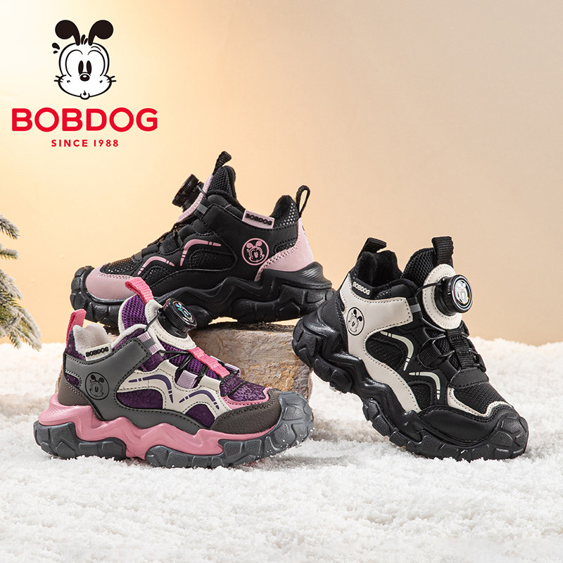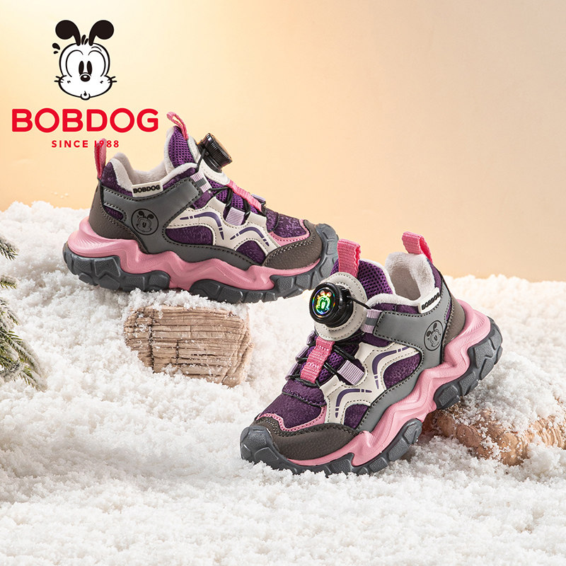 巴布豆童鞋官方旗舰店女童加绒运动鞋冬季女孩跑鞋冬款儿童二棉鞋