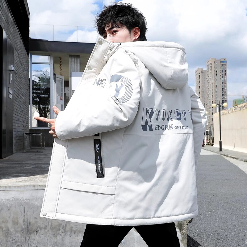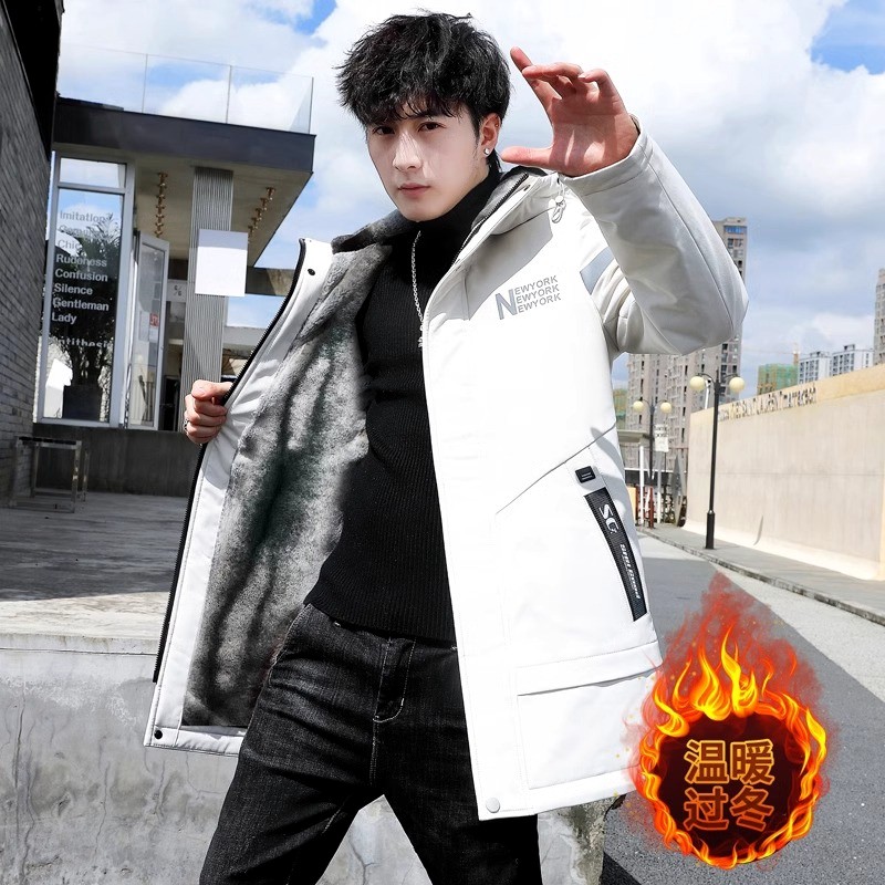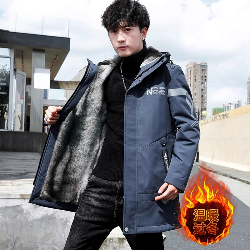 青少年男款羽绒服中长款加绒加厚派克服男装帅气学生棉服冬季外套