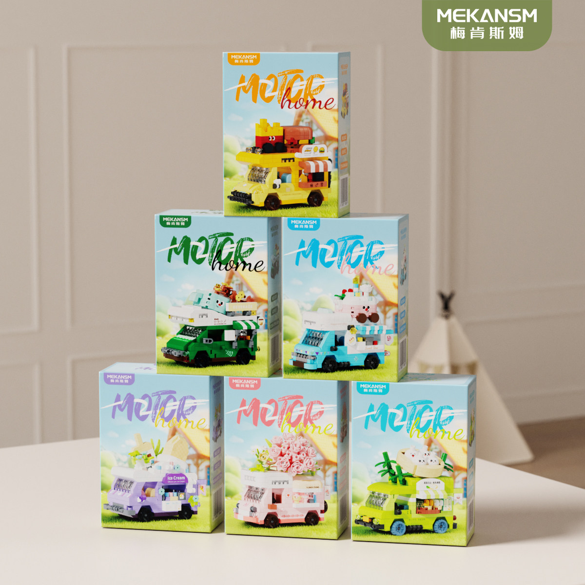 美食旅途房车街景积木模型益智拼装男孩女孩玩具汽车场景摆件礼物