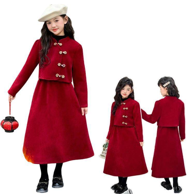 女童国风套装加绒加厚冬装年服裙子2026新款中大童洋气时髦两