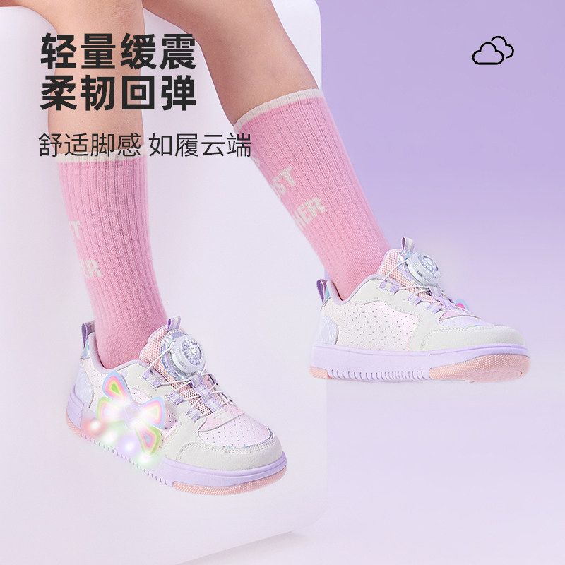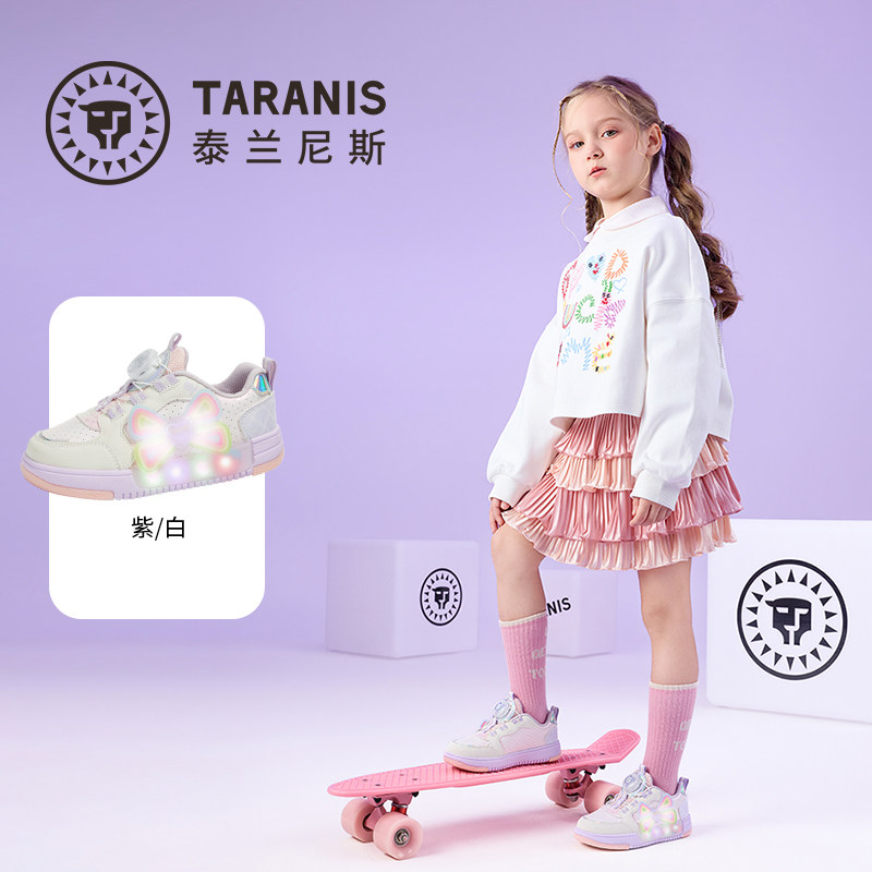 泰兰尼斯儿童闪灯板鞋2026年春季新款女童休闲板鞋柔软舒适幼儿园