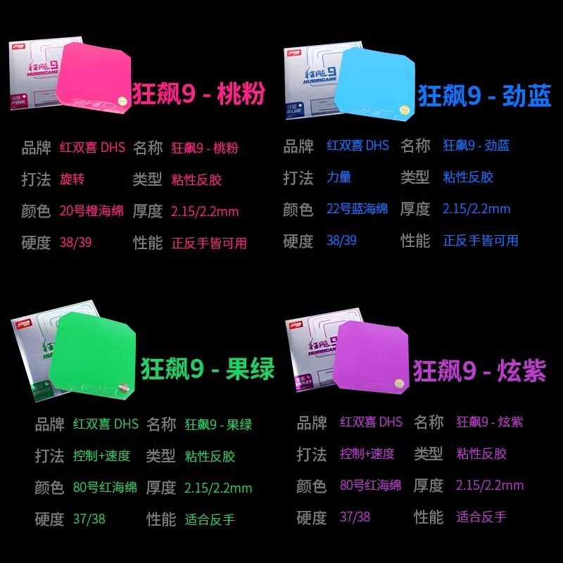 红双喜乒乓球拍胶皮狂飙9兵乓球套胶胶皮狂飚9蓝海绵粉色胶皮绿色
