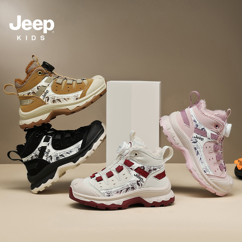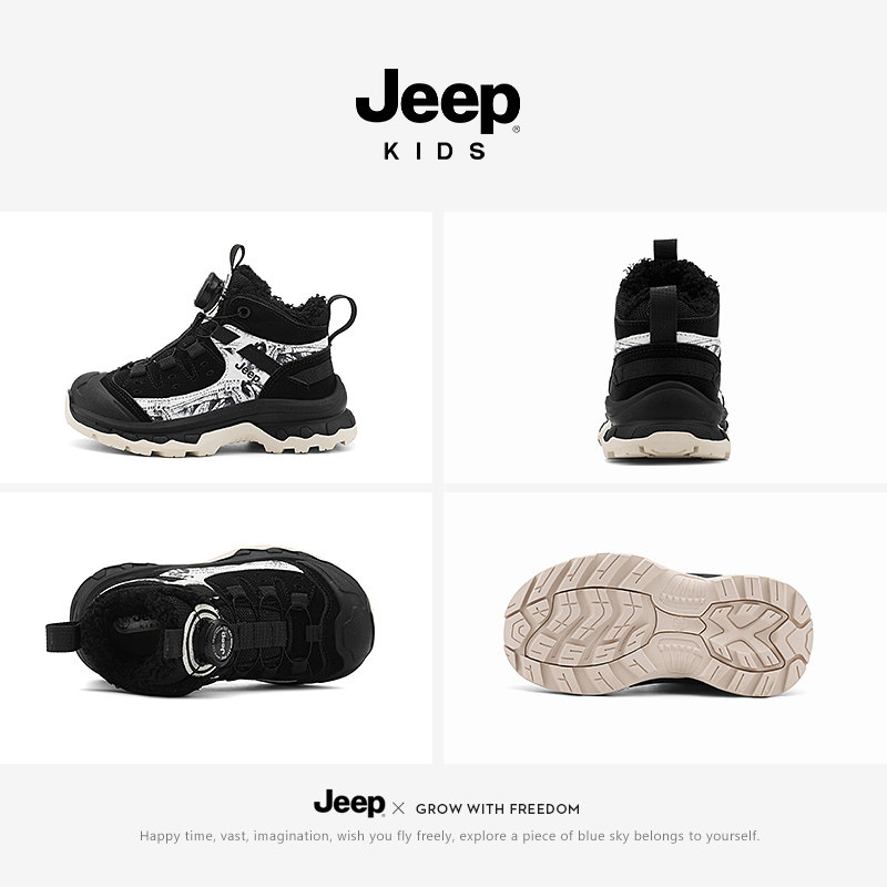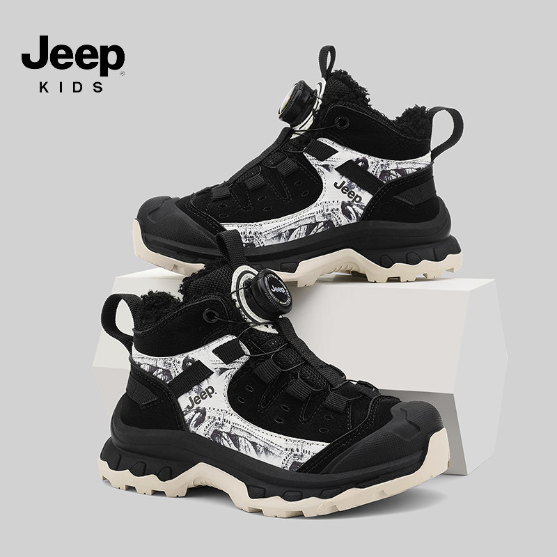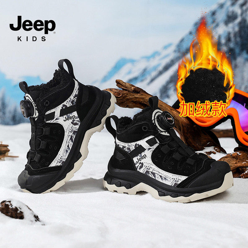 jeep儿童加绒运动鞋大棉鞋2025新款冬季男童女童防水防滑二棉鞋子