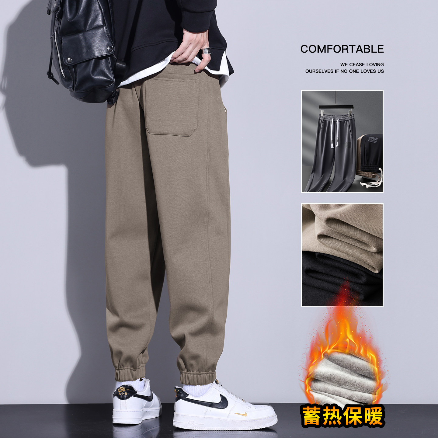 男士休闲裤冬季加绒加厚2025新款运动卫裤青少年宽松束脚裤子男款