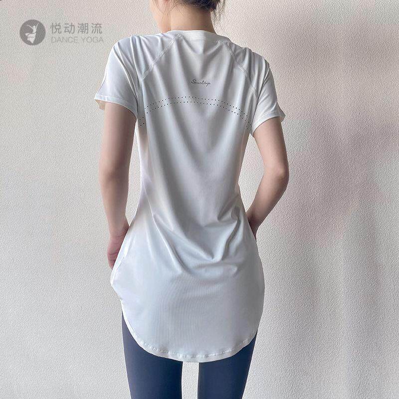 瑜伽服短袖夏季中长款遮臀速干健身运动恤女裤搭配的上衣薄