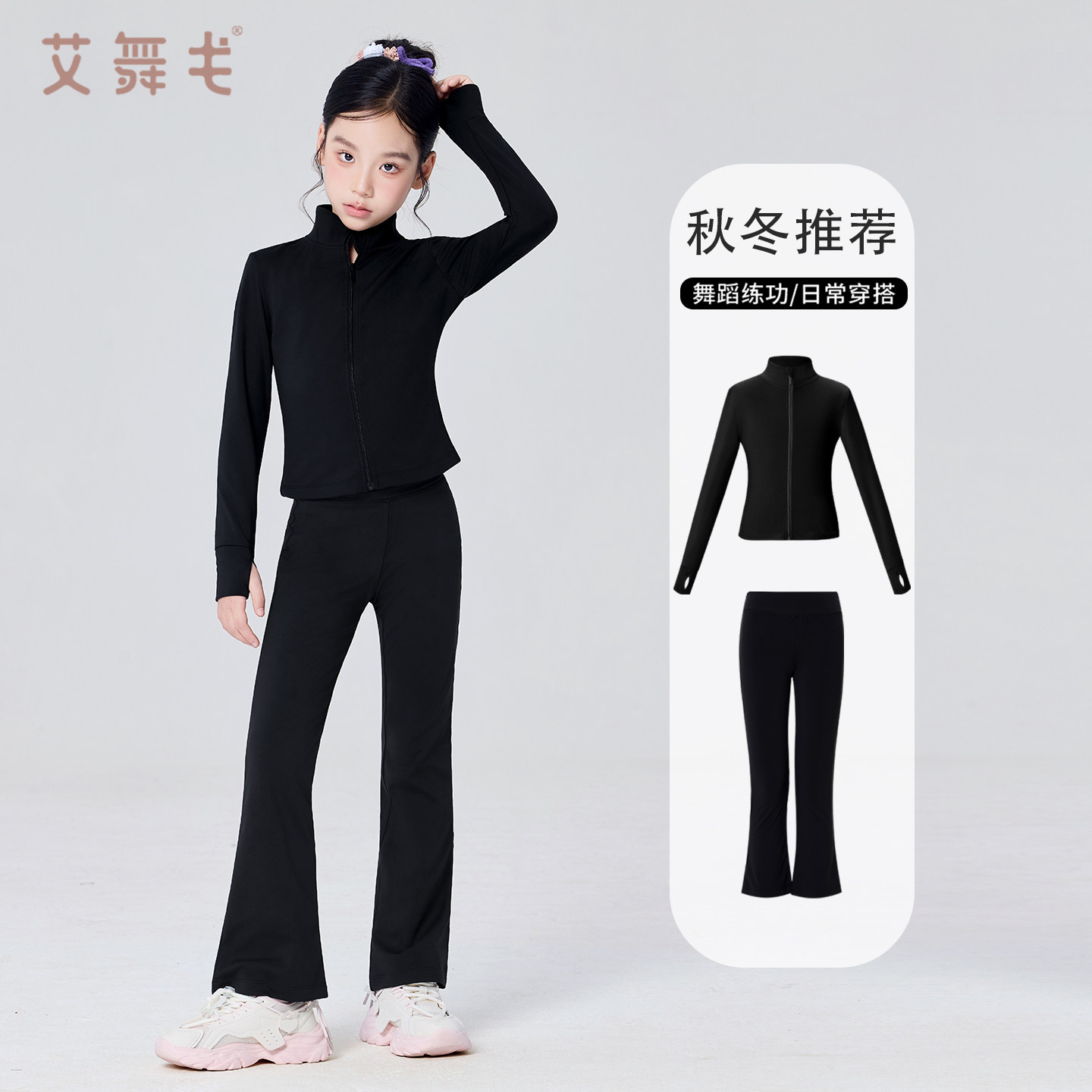 舞蹈服儿童女童秋冬长袖加绒艺考练功服拉丁舞训练外套喇叭裤套装