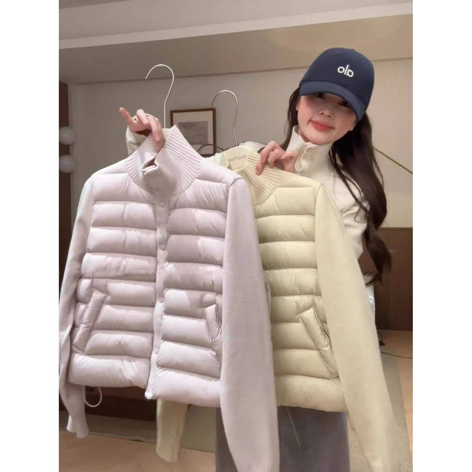 轻薄羽绒服女款冬季新款立领毛衣拼接轻便排骨90白鸭绒内胆外套潮