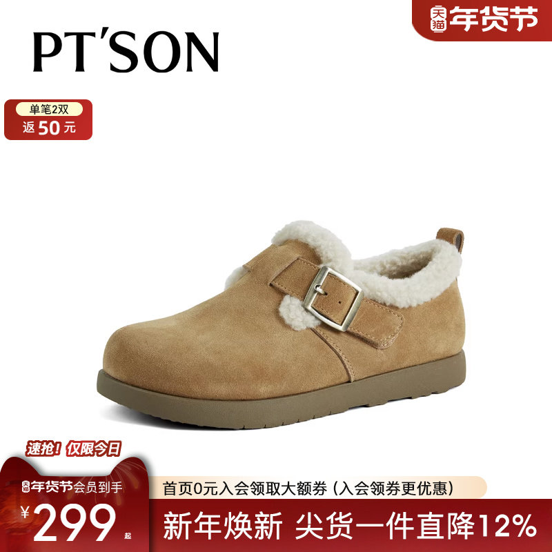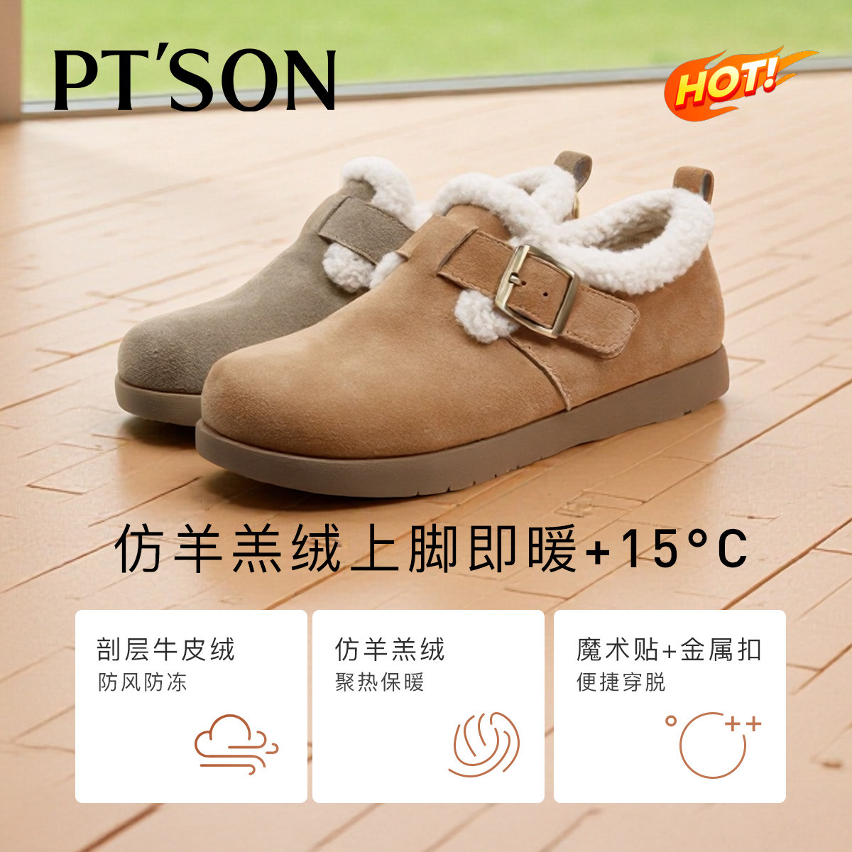 百田森厚底雪地靴女款2025新款冬季真皮加绒勃肯鞋外穿保暖百搭