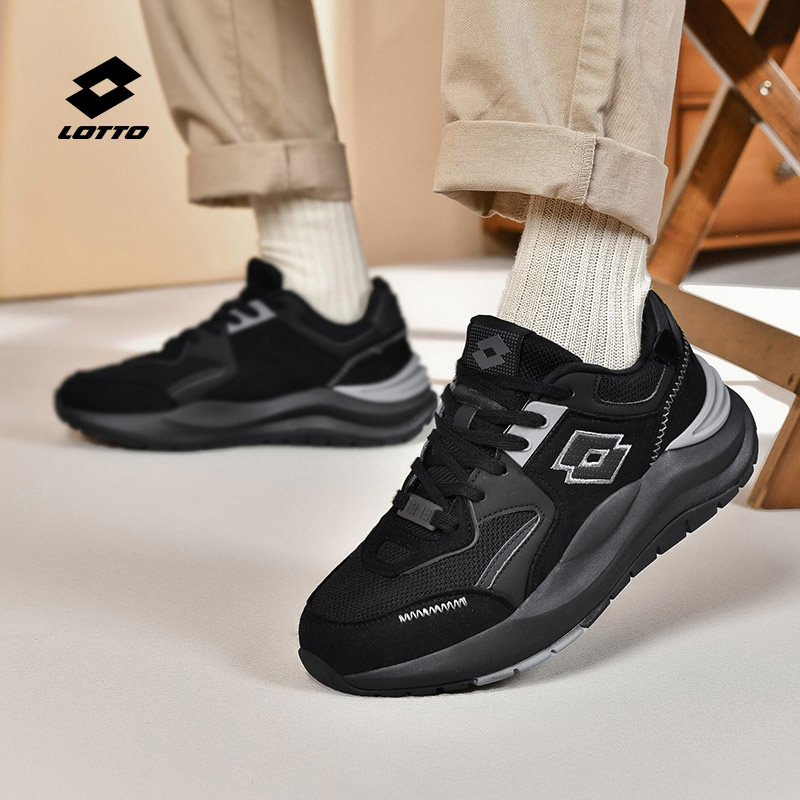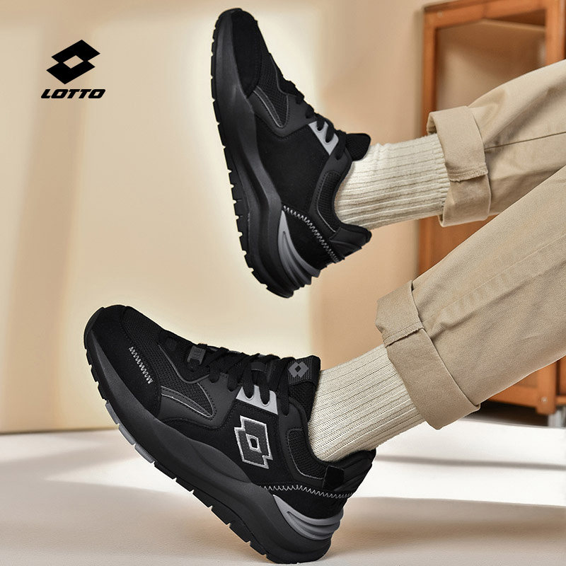 乐途运动鞋男休闲鞋正品冬季新款老爹鞋网面黑色厚底加绒增高鞋子